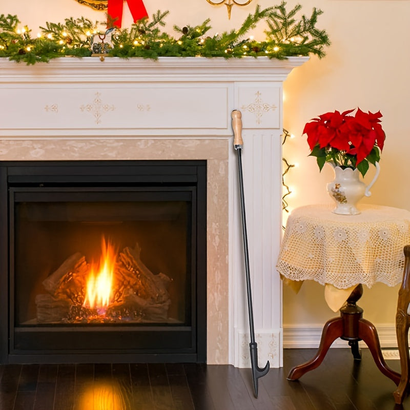 Portable Fire Pit Poker Stick with Swivel Mount and Wooden Handle for Camping and Indoor Use