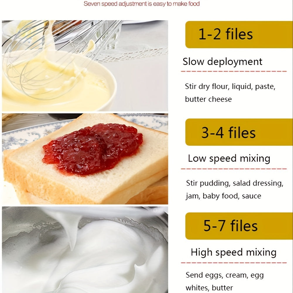 Electric Hand Mixer Stainless Steel Beaters 7-Speed Easy Clean Baking Tool