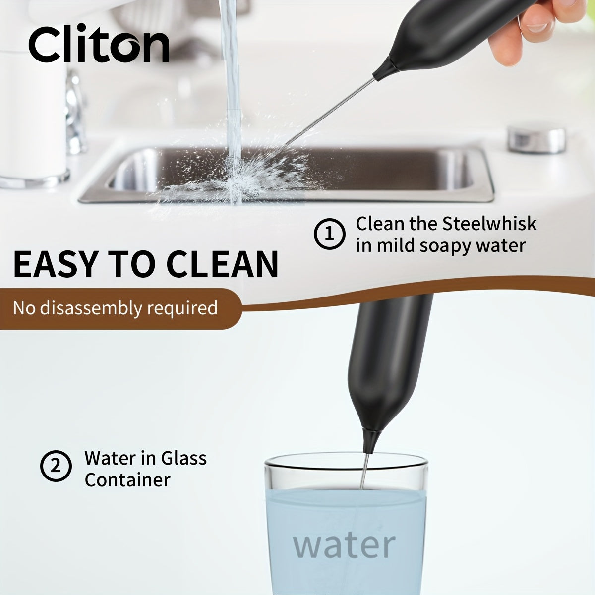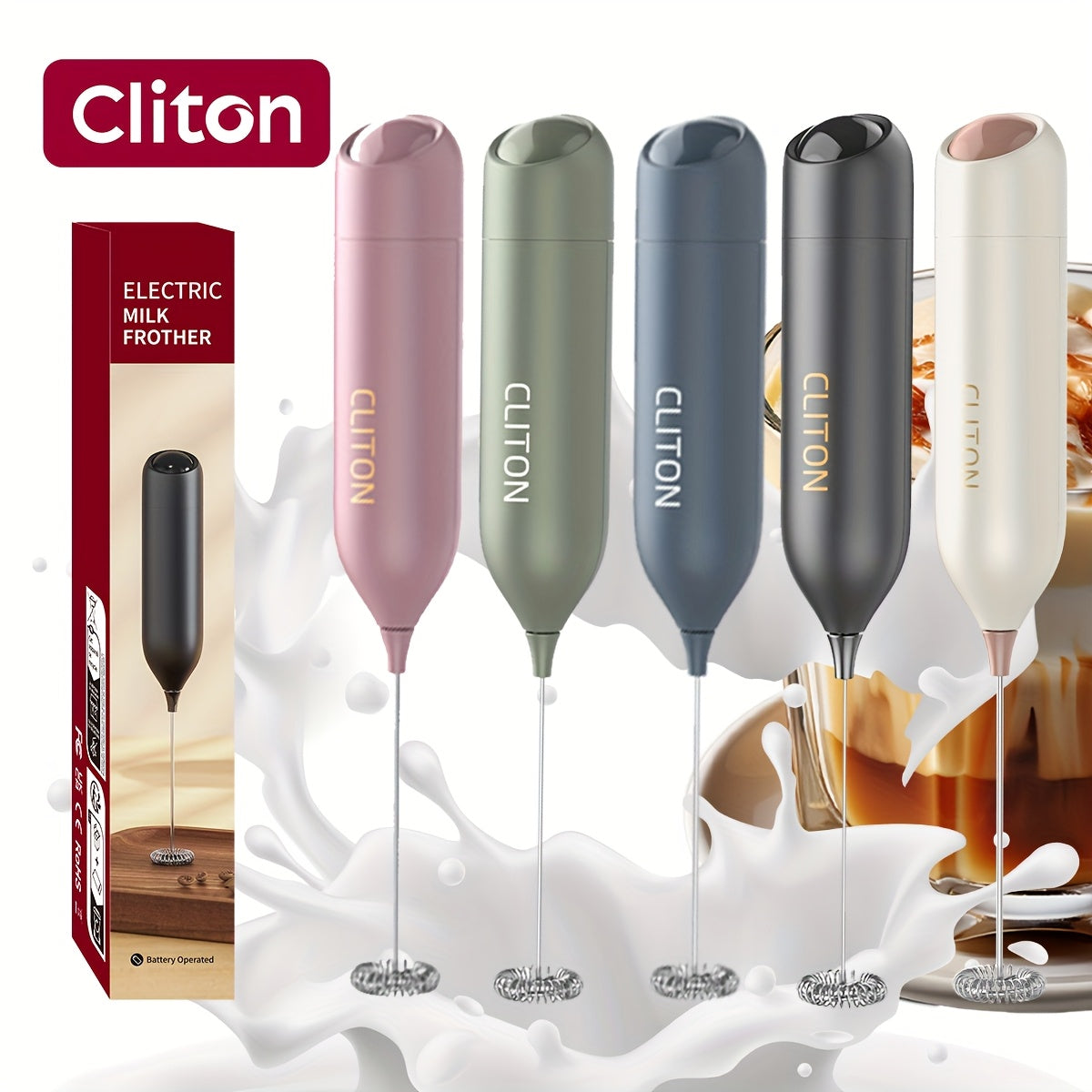 Electric Milk Frother Handheld Stainless Steel Stand Battery Powered For Coffee Latte