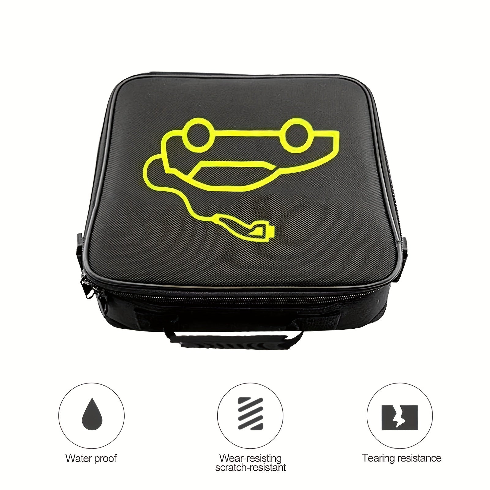 Electric Vehicle Charger Storage Bag Polyester Organizer with Green Wheel Design