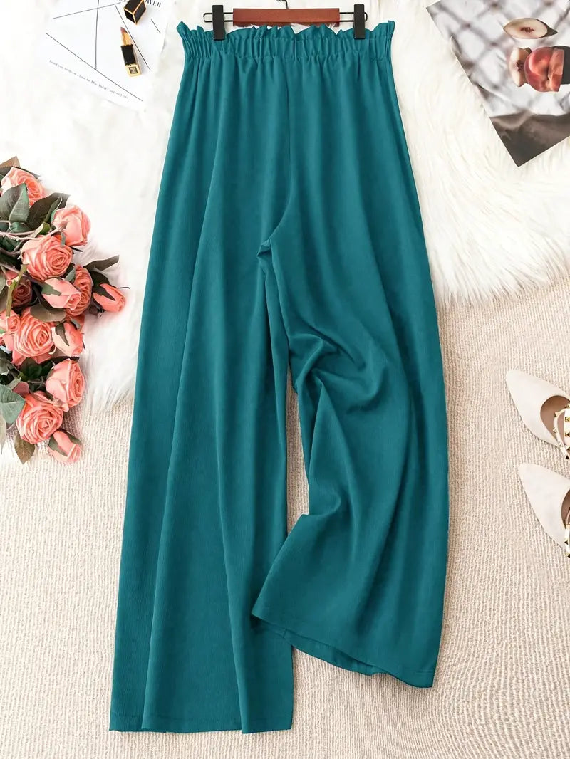 Plus Size Woven Fabric Straight Leg Pants with Drawstring Waist for Spring and Summer