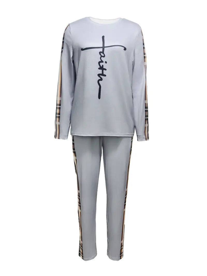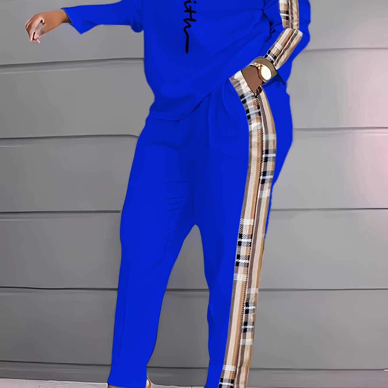 Women's Plaid Print Spandex Knit Jumpsuit with Crew Neck Pockets for Fall Winter