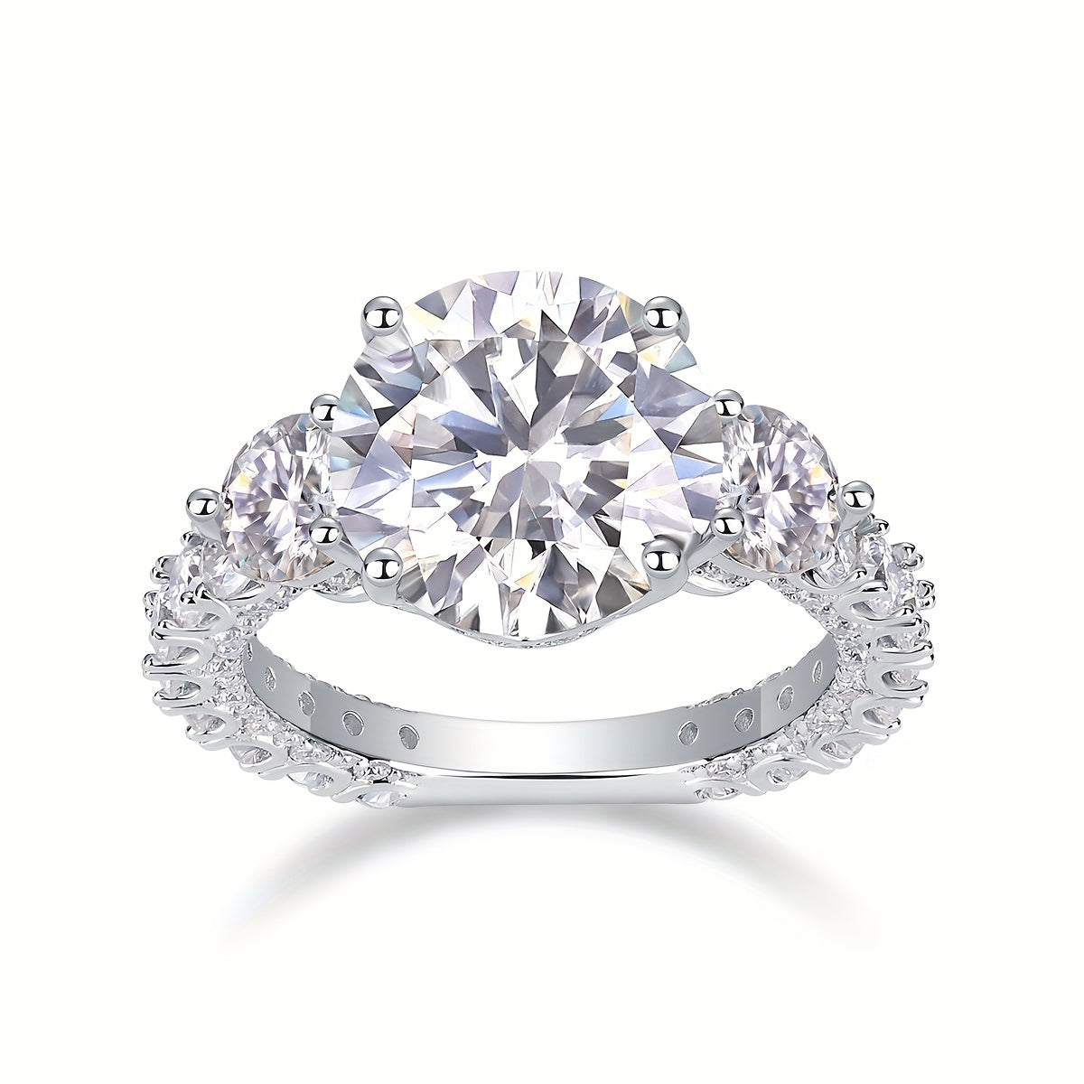 Vintage Bohemian Moissanite Engagement Ring 5 Carat Round Synthetic April Birthstone 18K Gold Plated Silver