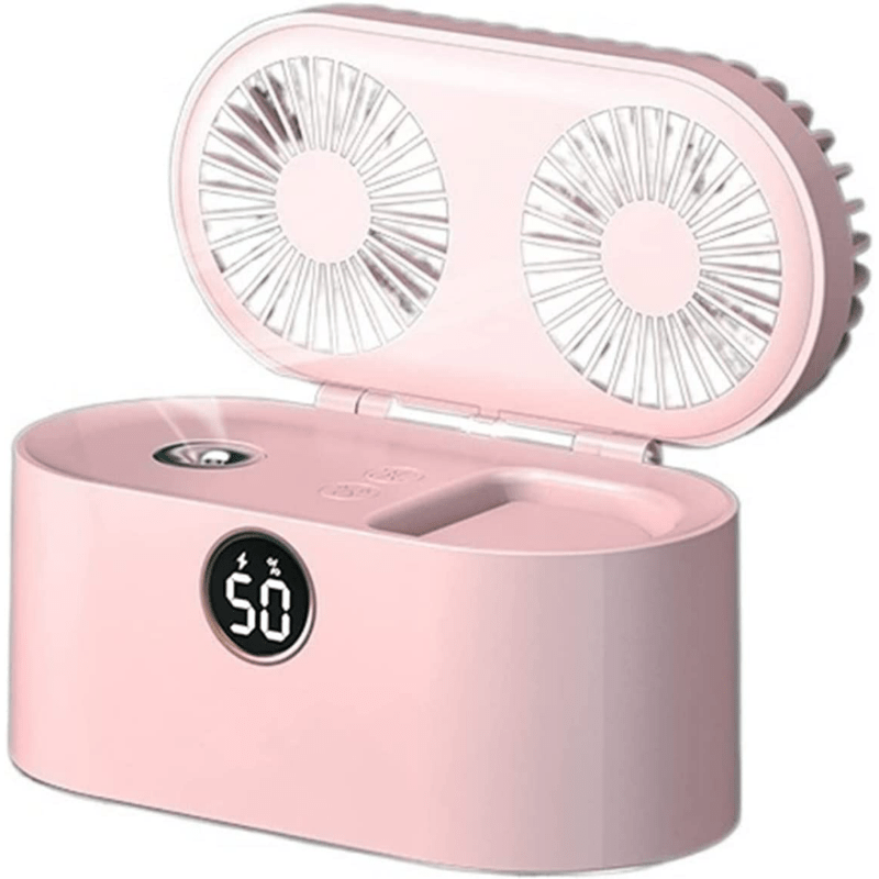 White Desktop Air Conditioner Mini Fan with Humidifier, USB Rechargeable, Quiet Cooling