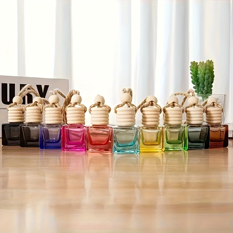 Empty Square Glass Bottle 8ml Perfume Diffuser Aromatherapy Car Pendant