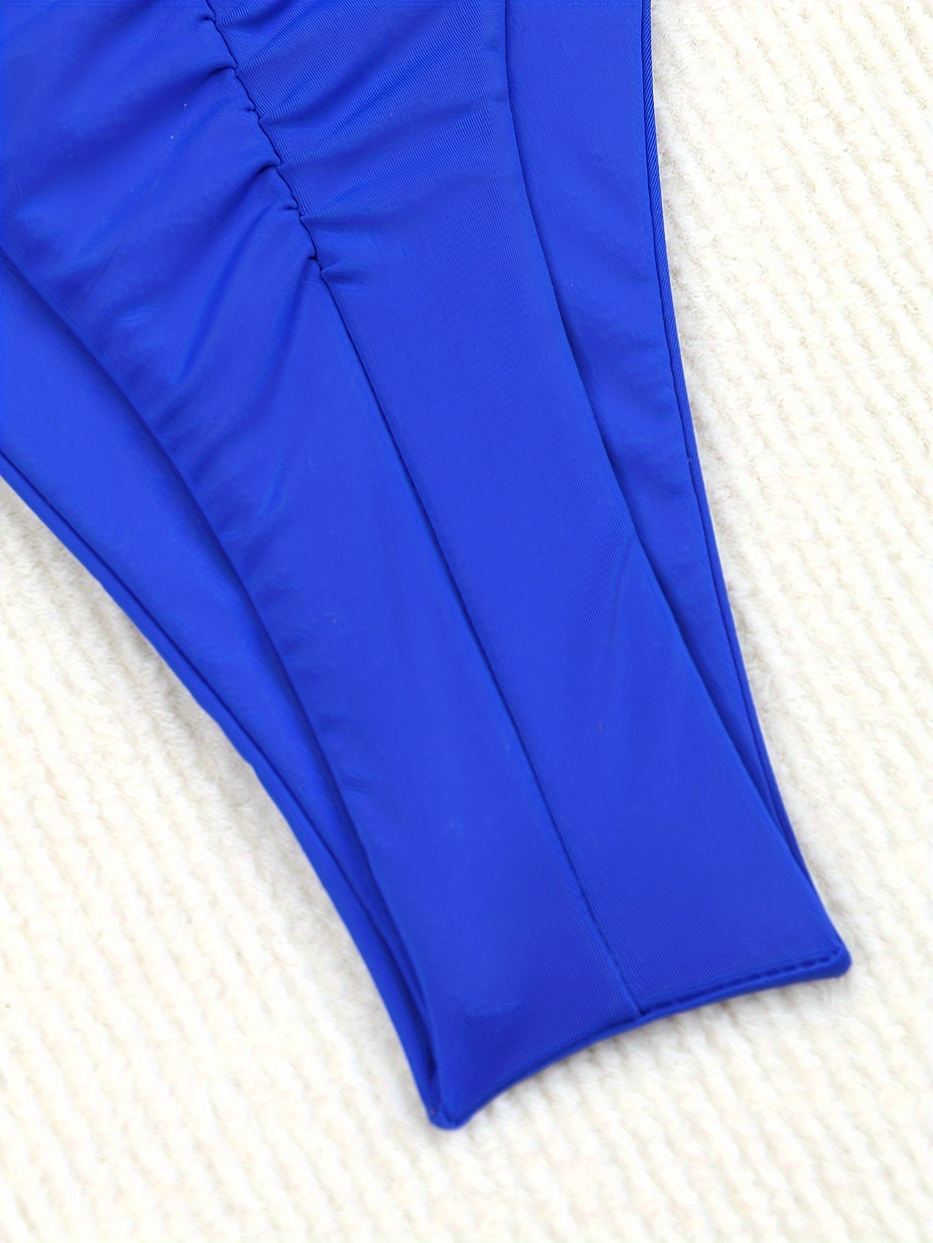 Women's Solid Color High Stretch Nylon Pleated Thong Bikini for Beach Vacation
