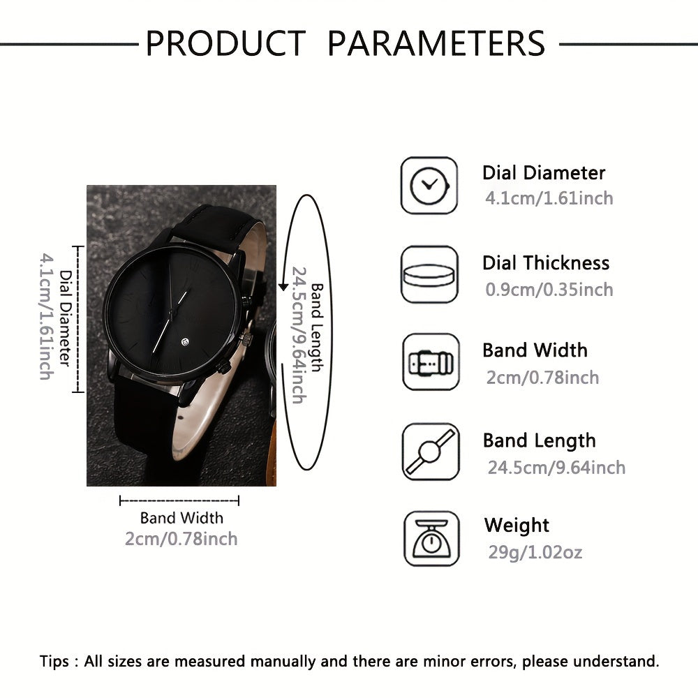 Men's Quartz Watch Set with Calendar Leather Strap Analog Stylish Alloy Case for Graduation or School