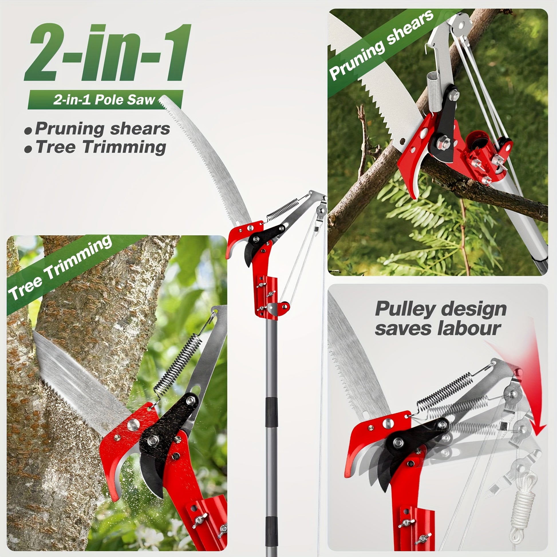 Extendable Tree Pruner with Saw and Shears Alloy Steel Pole for High Branch Trimming