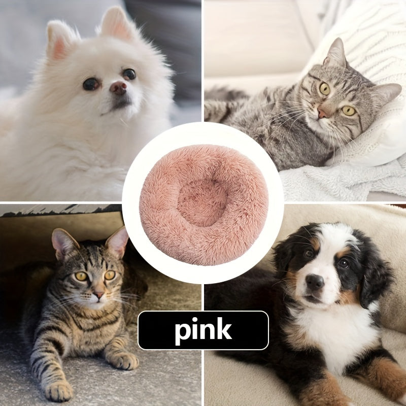 Extra Large Round Dog Bed Non-Slip Faux Plush Polyester Warm Cuddly Pillow
