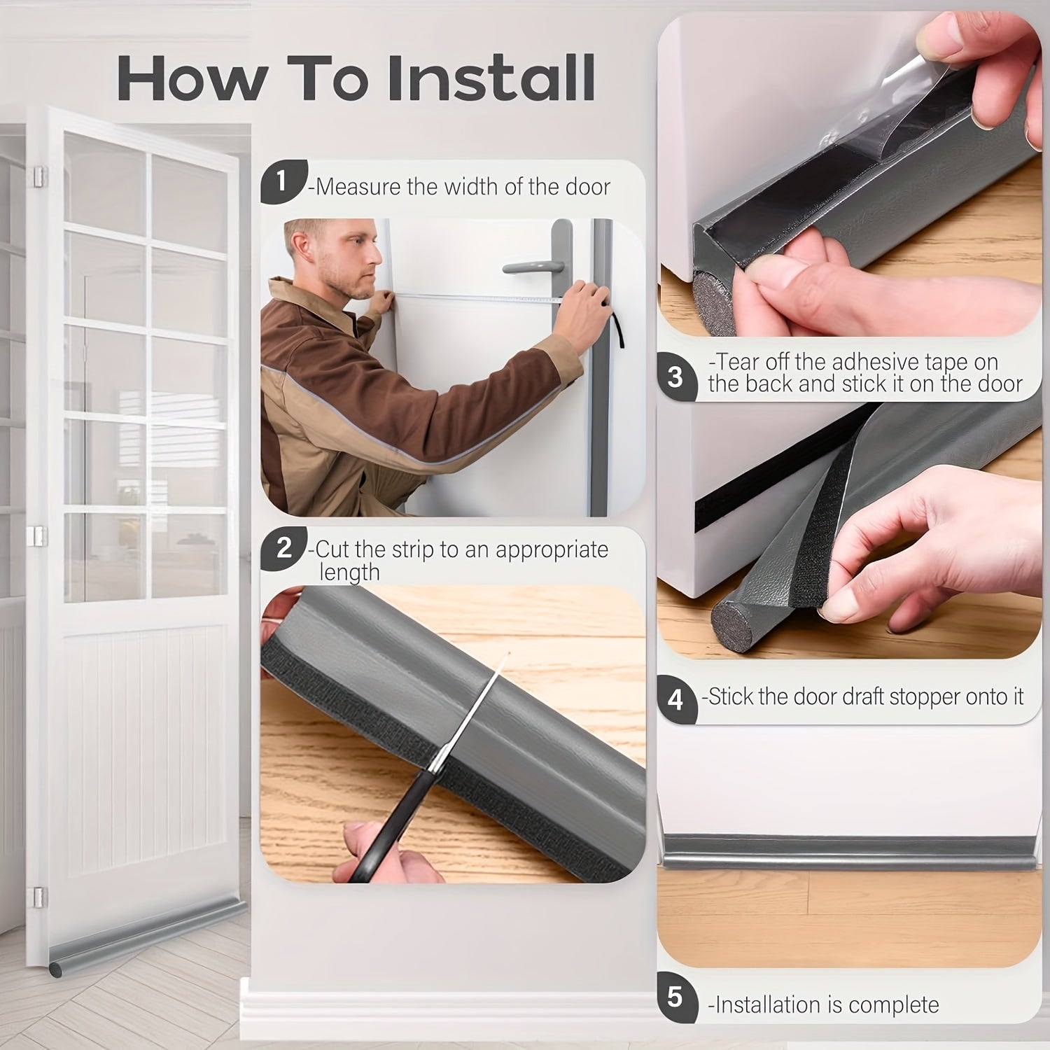 Faux Leather Door Draft Stopper with Adhesive Strip Seals Bottom of Doors