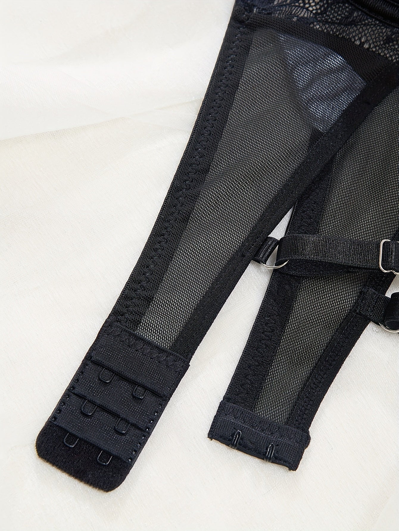 Lingerie Set Floral Lace Garter Belt with Strappy Bra and Cut-Out Panties