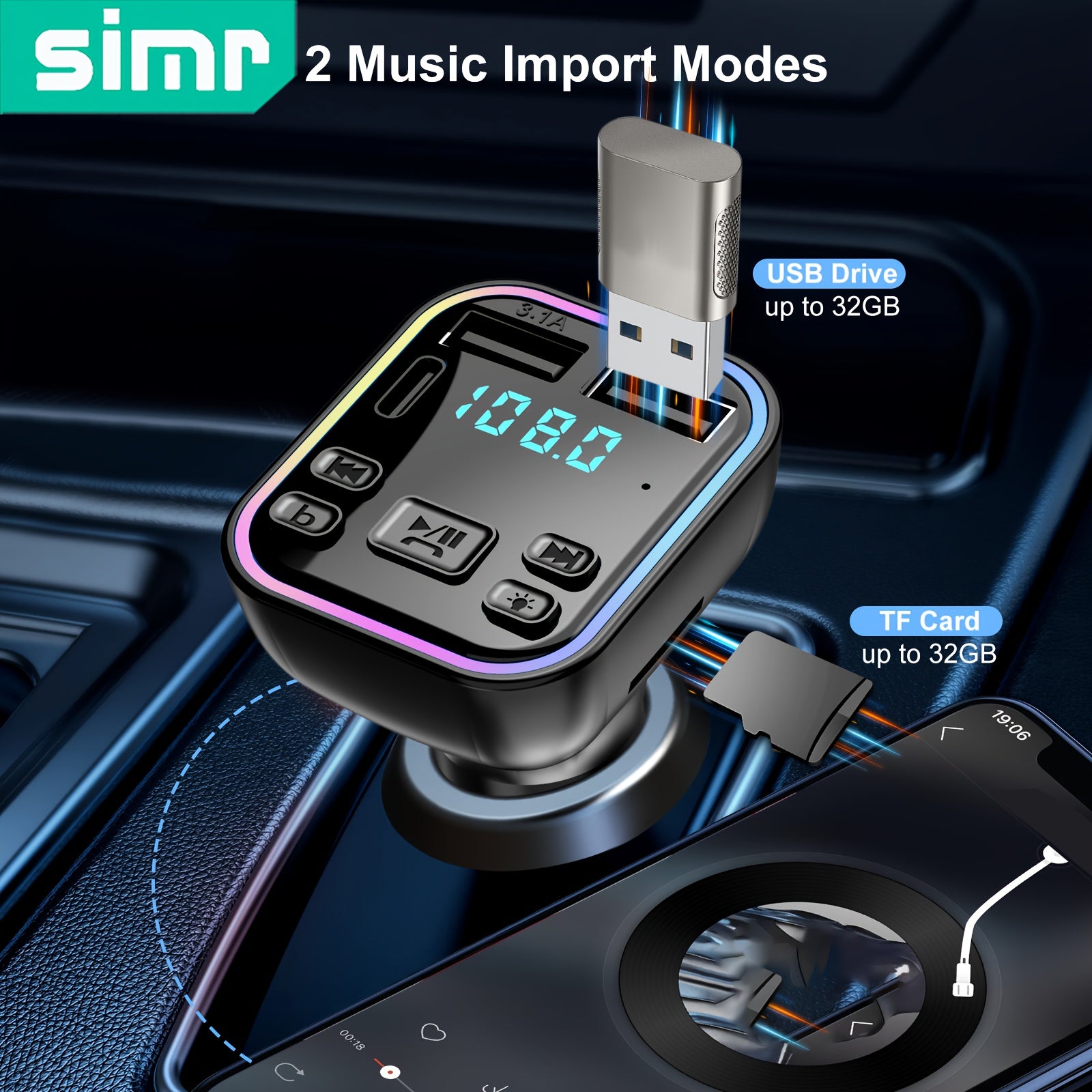 FM Transmitter Car Charger with Wireless MP3 Player Hands-Free Calling Dual USB-C Fast Charging