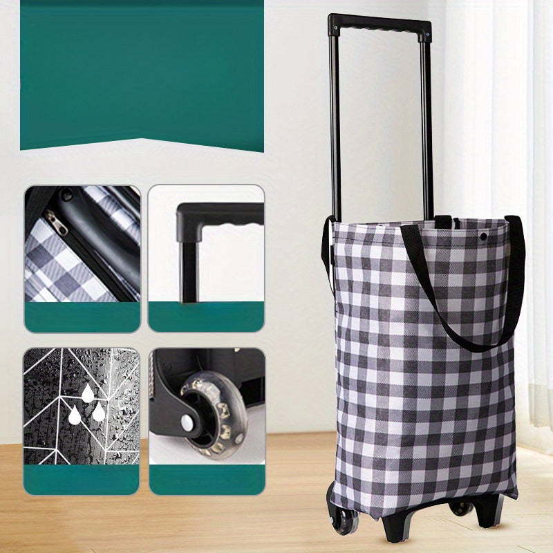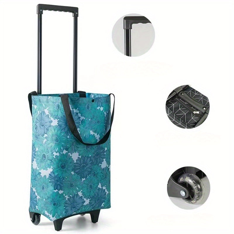 Foldable Shopping Cart with Wheels Waterproof Oxford Fabric Large Capacity Outdoor Groceries
