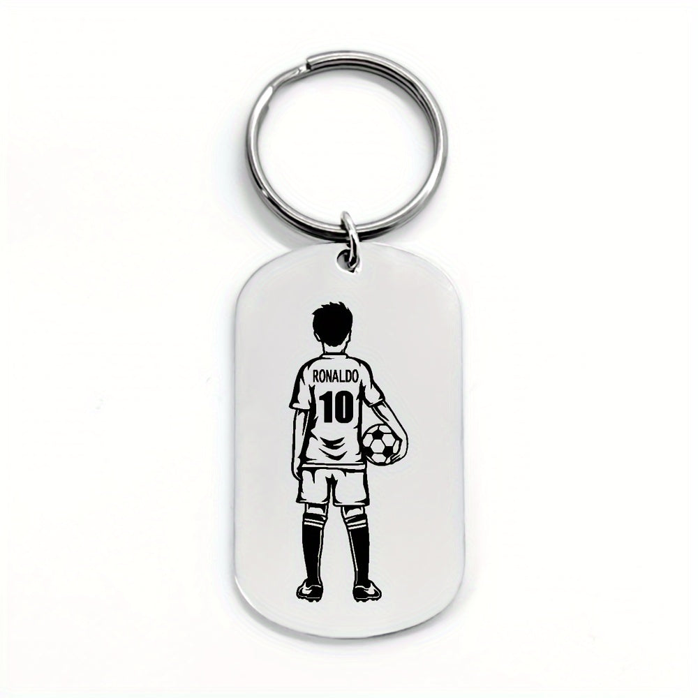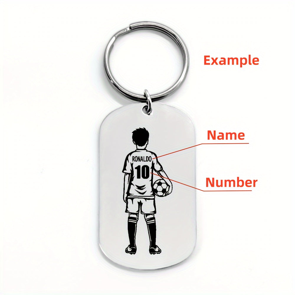 Football Player Keychain Custom Name Number Stainless Steel Gift for Men