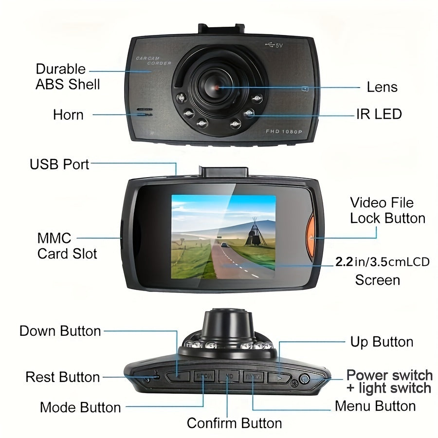 Front-Facing Dash Cam 1080P Infrared Night Vision Wide-Angle Screen