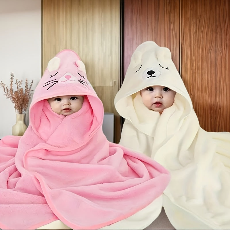 Kids Bath Towels Set 2 Soft Absorbent Cartoon Design for Boys Girls Gray White Pink Blue