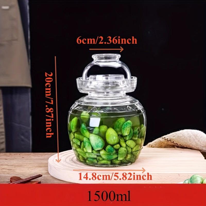 Glass Fermentation Jar 1500ml with Lid for Pickling Kimchi Sauerkraut Water Seal