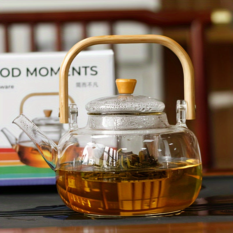 Glass Teapot with Bamboo Handle and Removable Infuser 34oz Heat-Resistant Borosilicate