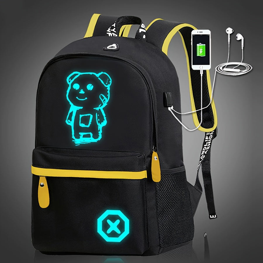 Glow-in-the-Dark Cartoon Backpack with USB Charging Adjustable Straps Zipper Closure