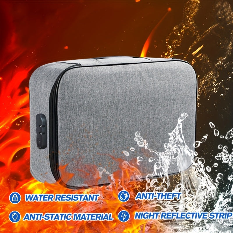 Gray Waterproof Fireproof Lockable File Organizer Bag for Laptops and Documents