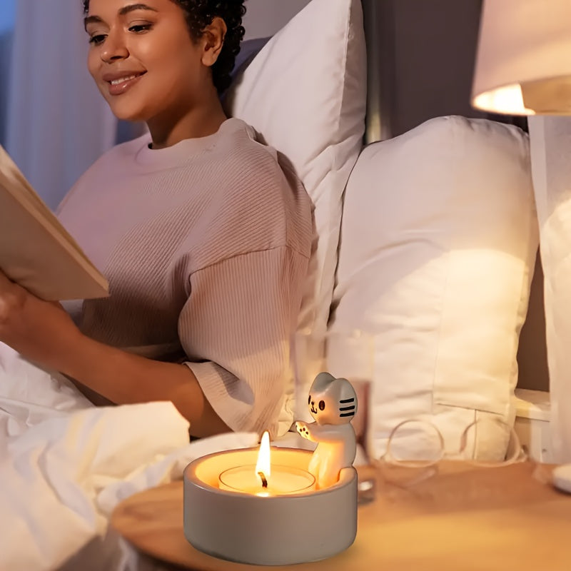 Ceramic Candle Holder with Cat Design for Gifts and Decor