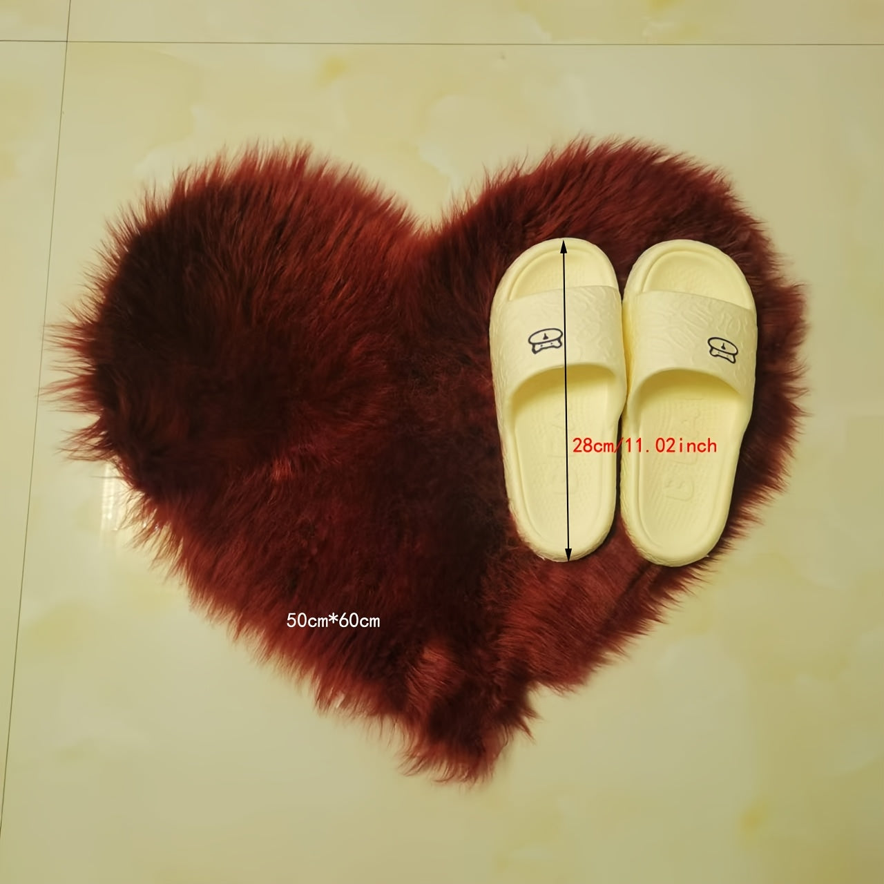 Heart-Shaped Faux Fur Area Rug Soft Plush Non-Slip Cozy Mat for Bedroom or Living Room