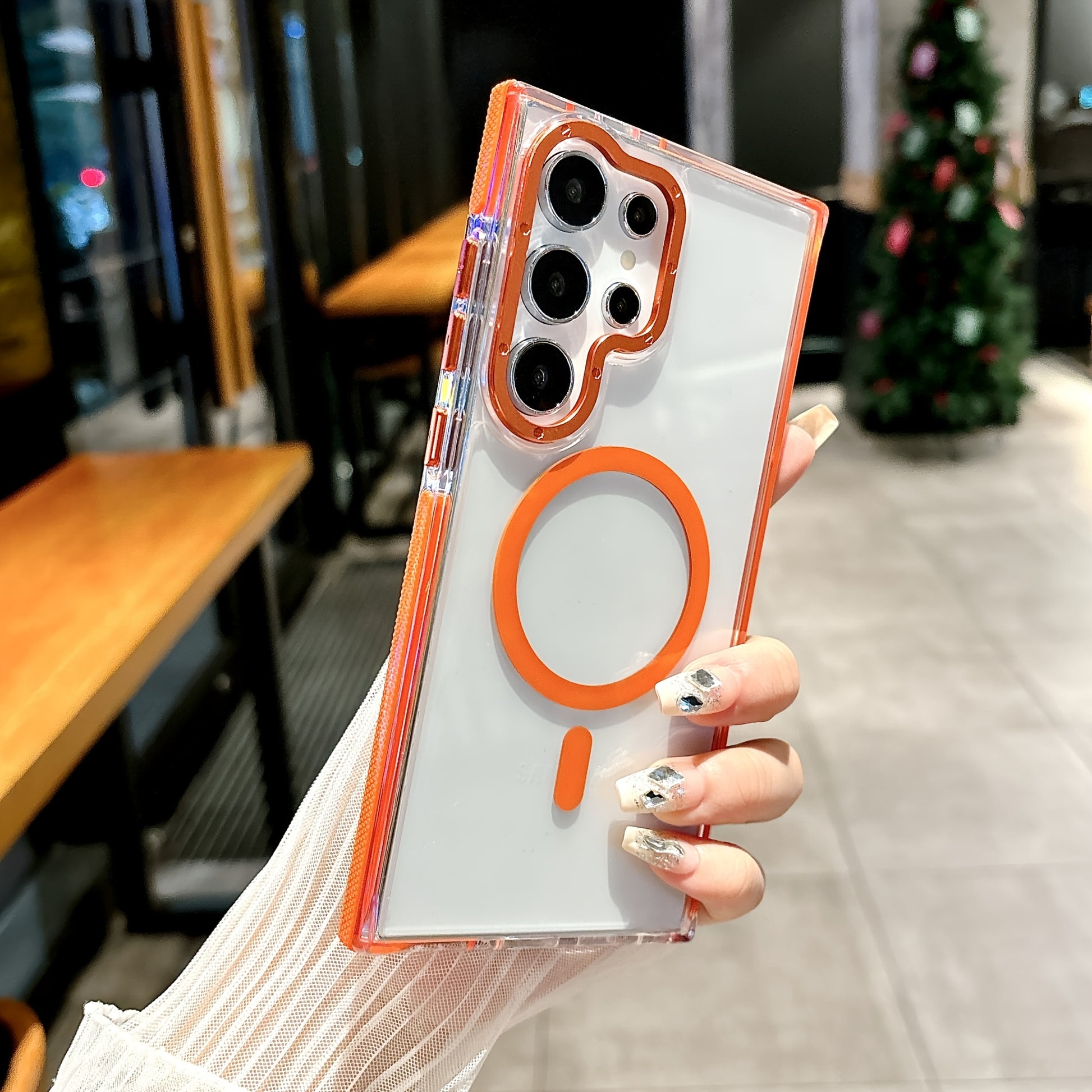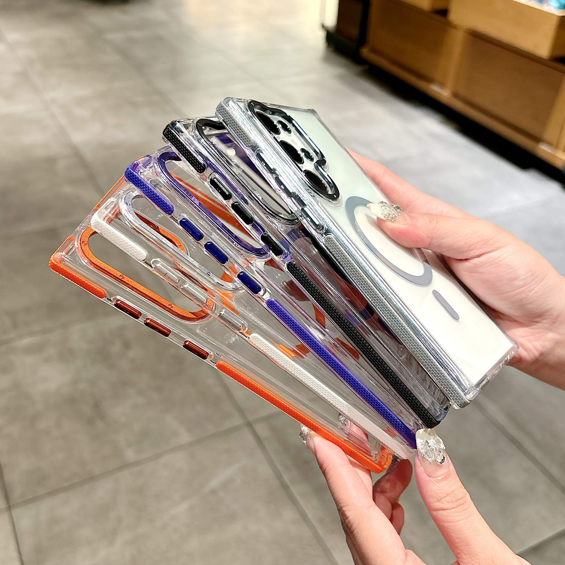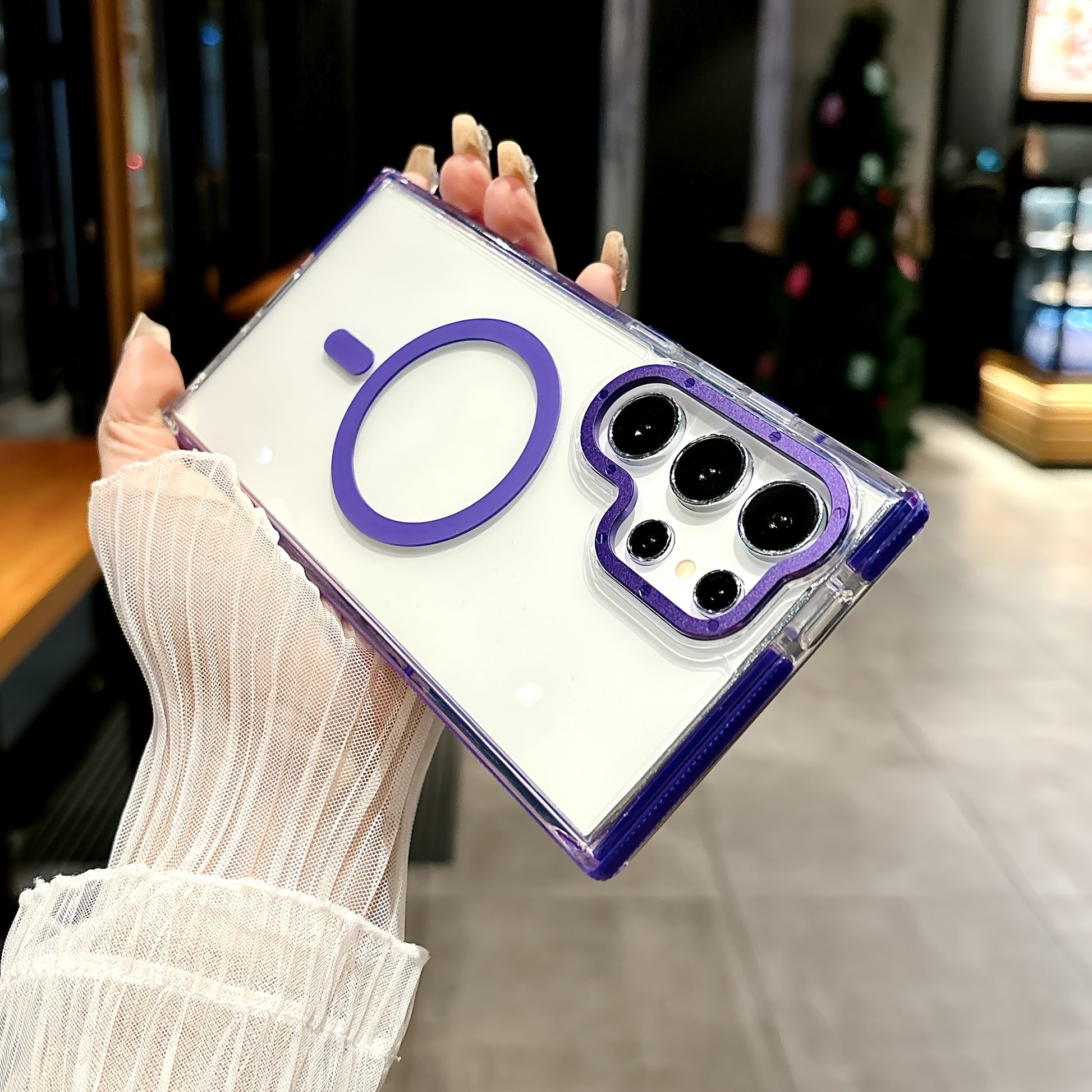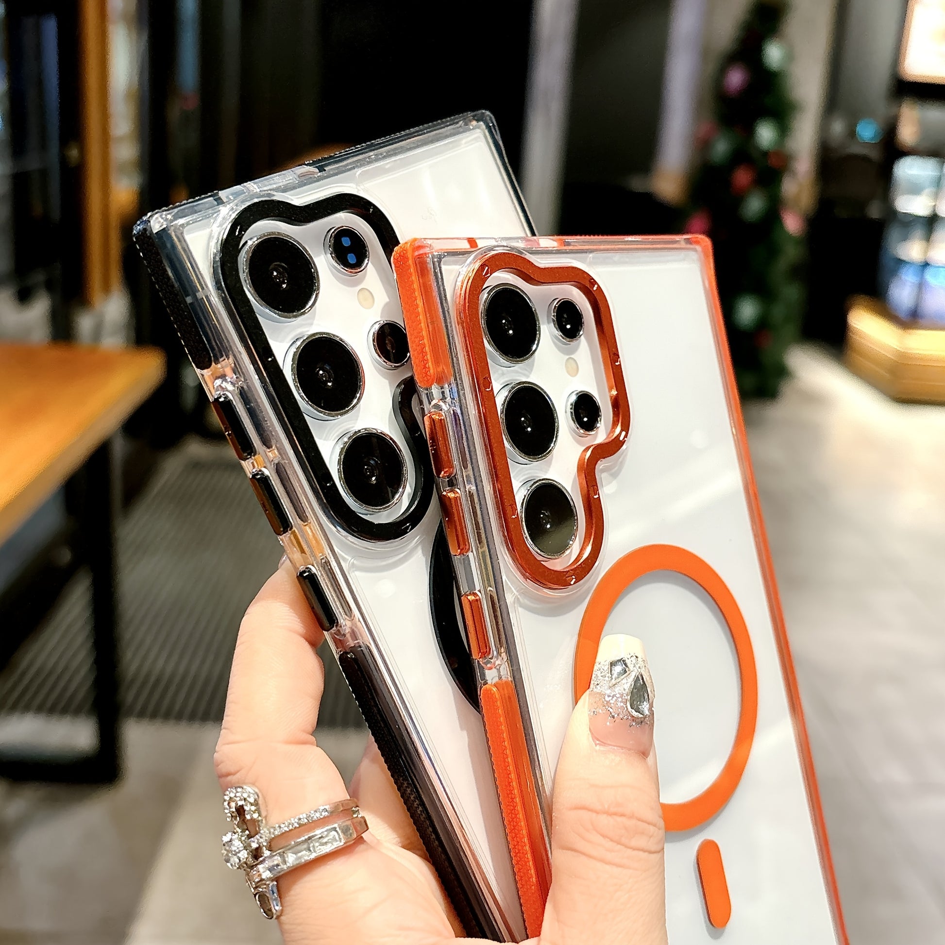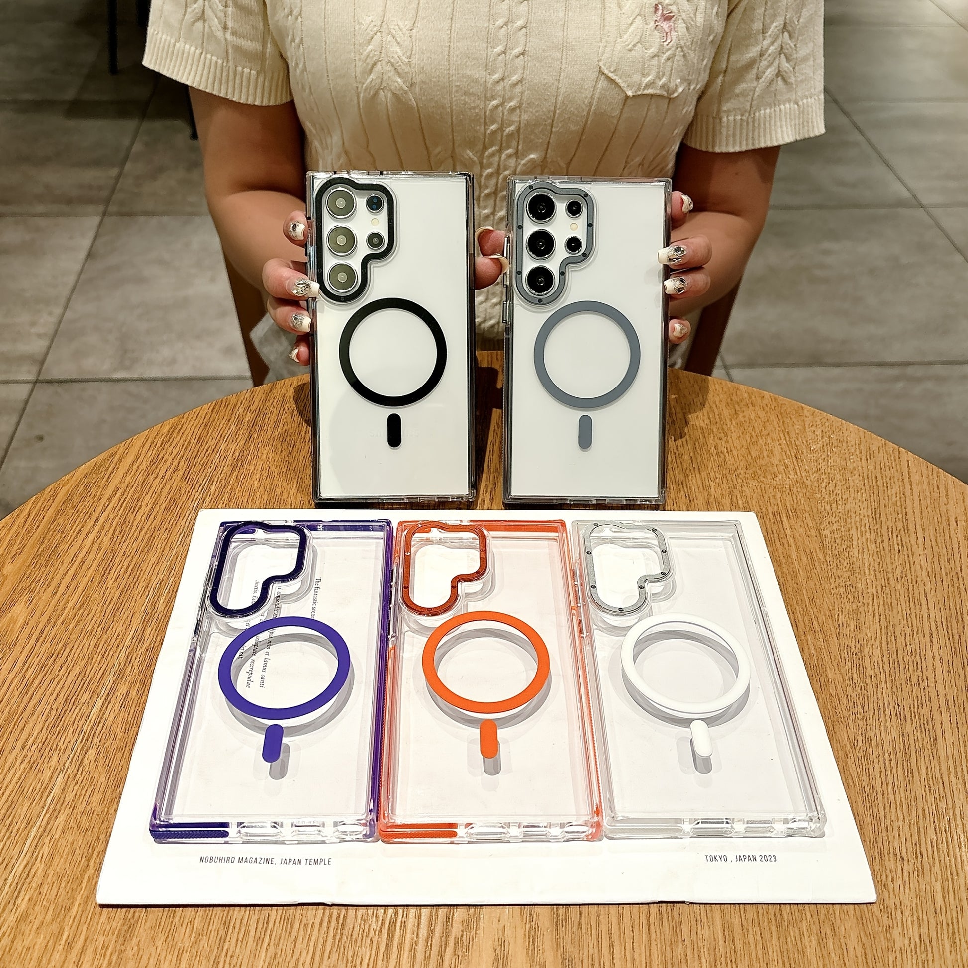 Transparent Magnetic Anti-Slip Phone Case for Samsung Galaxy S23 Ultra Plus with Wireless Charging and Shockproof Protection