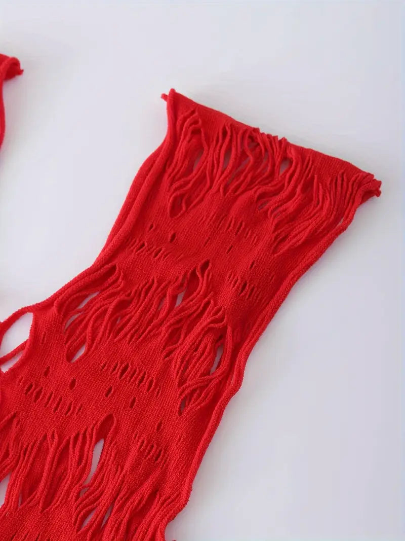 Women’s Sexy Lingerie Short Dress with Ripped Straps and Hollow Out Design