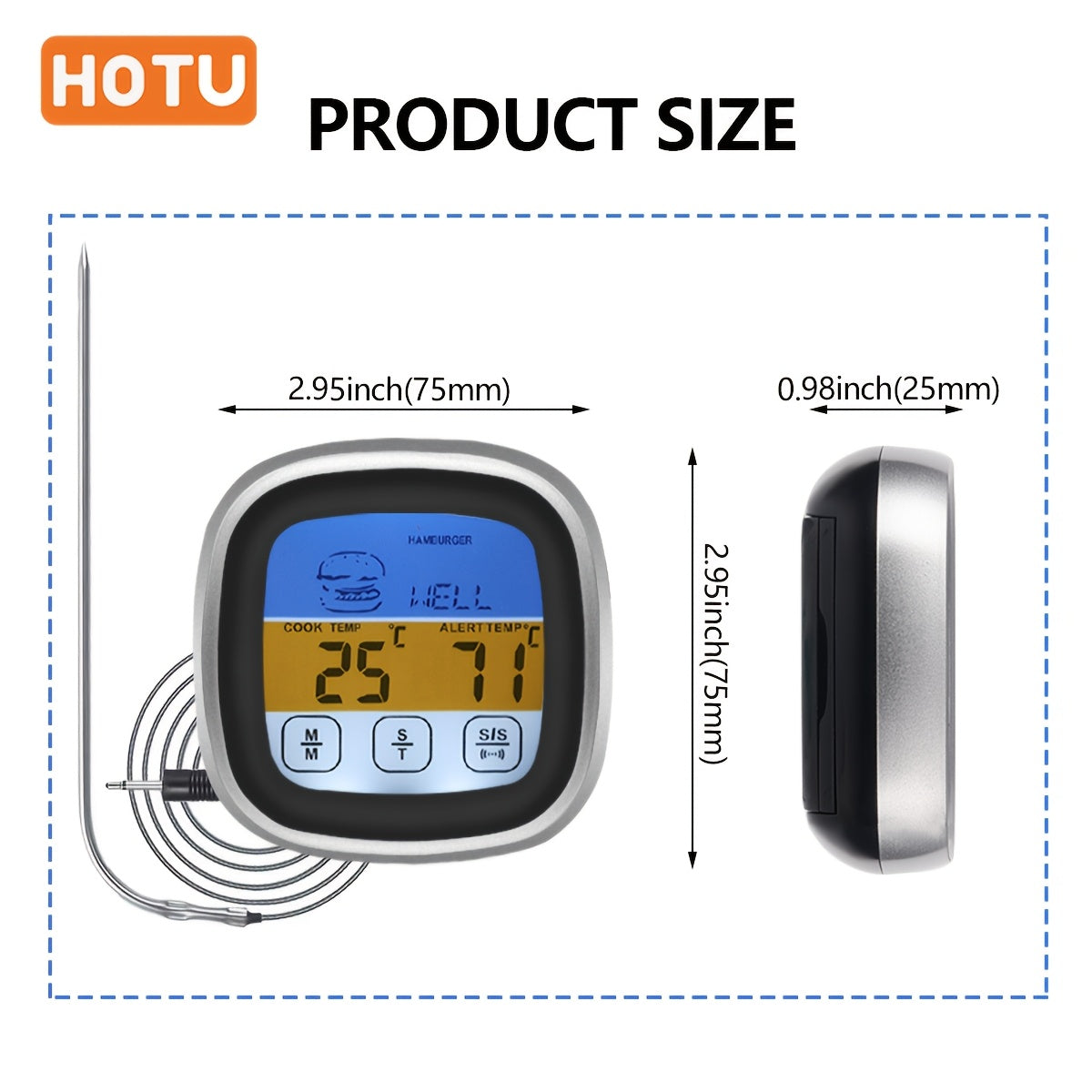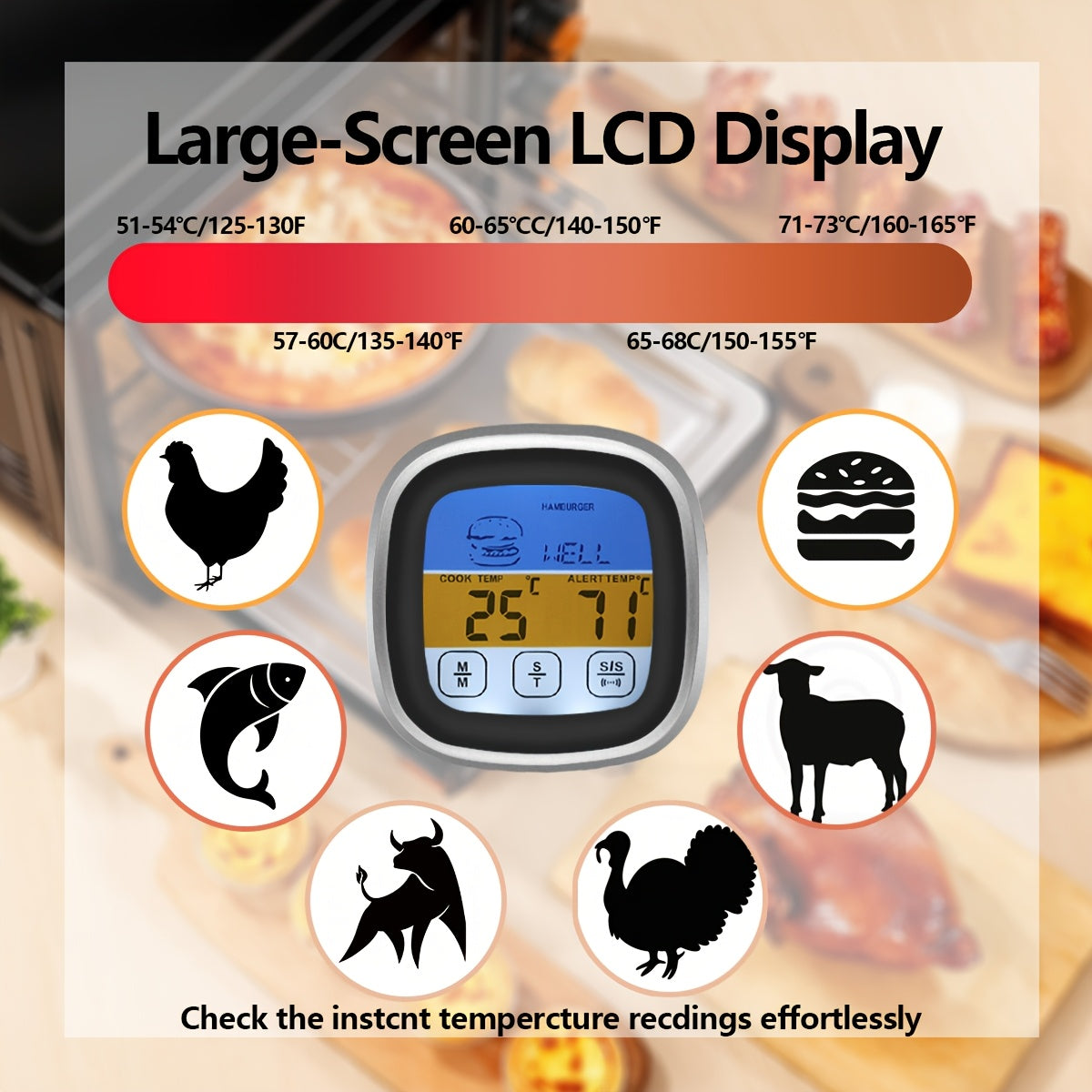 Digital Meat Thermometer with Large Touch Screen Stainless Steel Probe for BBQ Cooking Baking