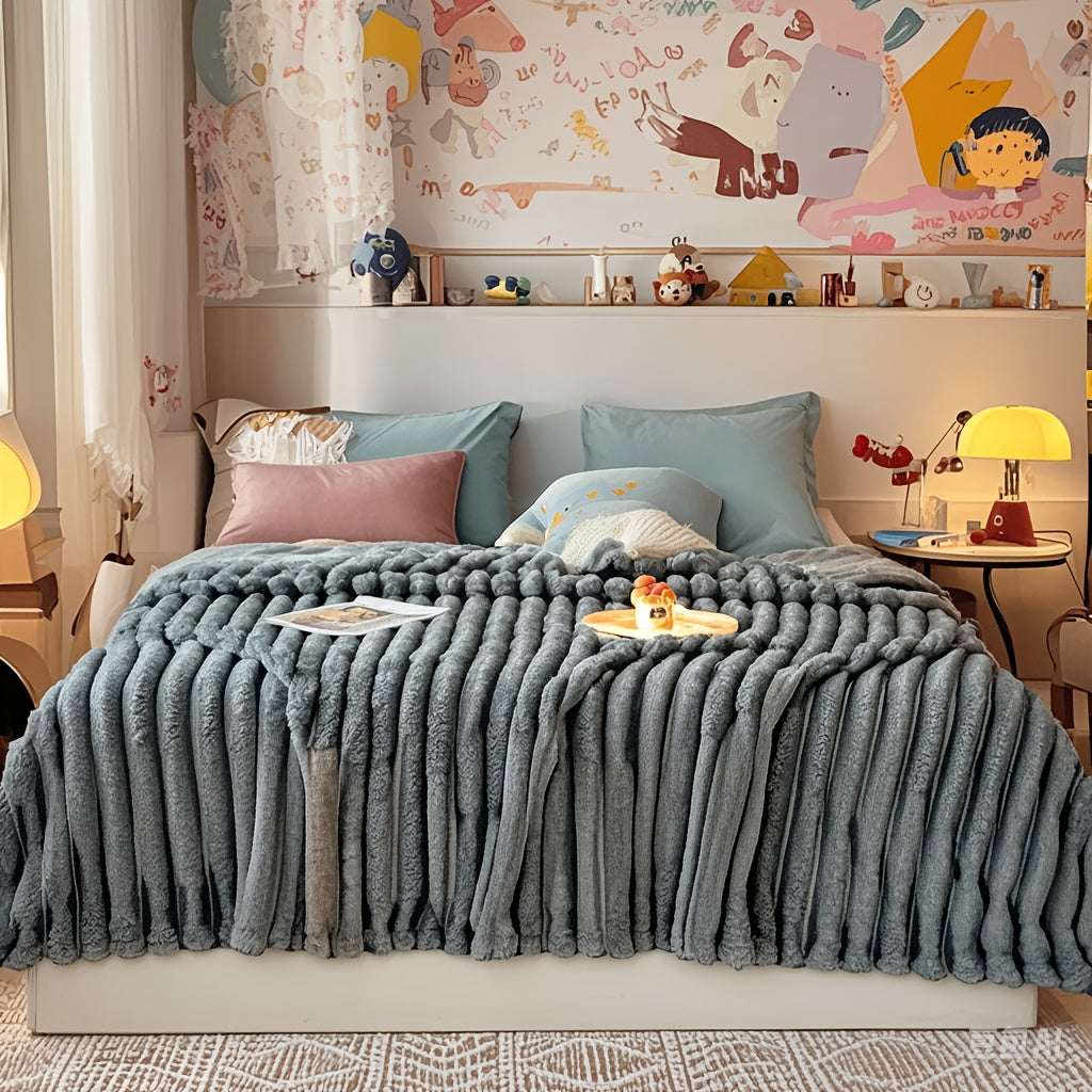 Faux Fur Blanket Plush Snug for Sofa Bed Travel Warm Gift