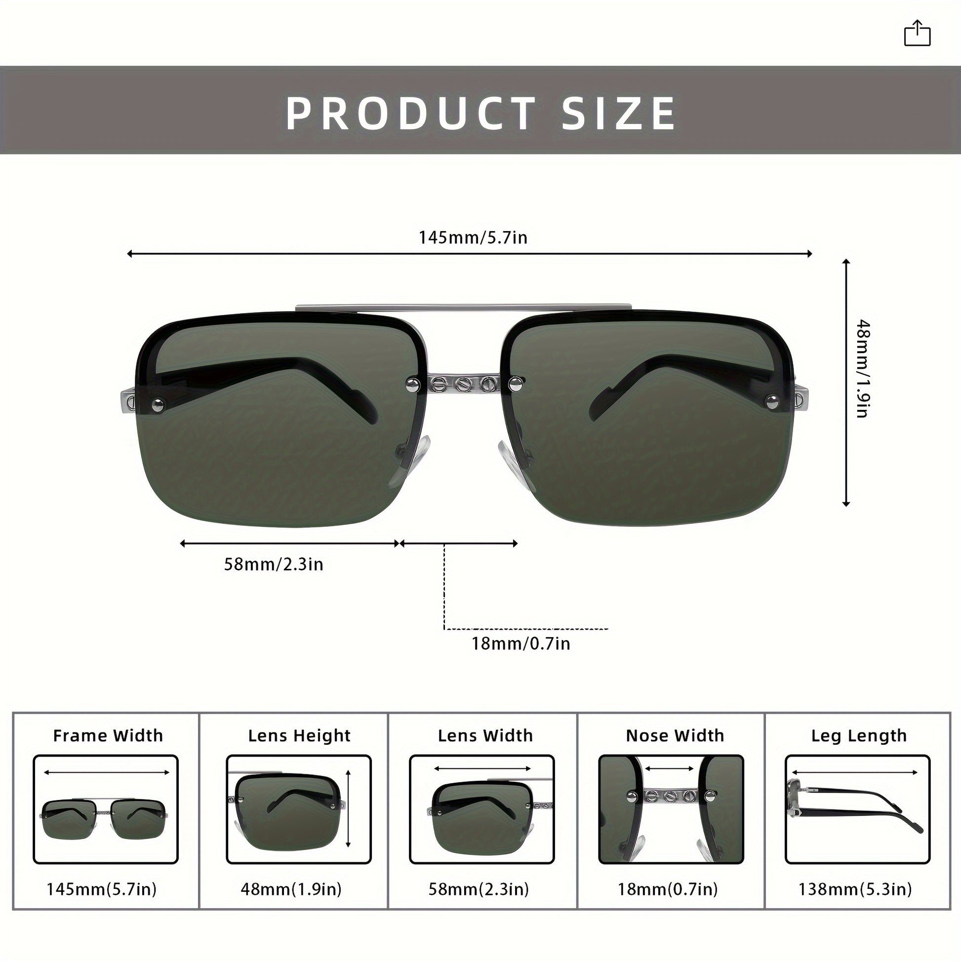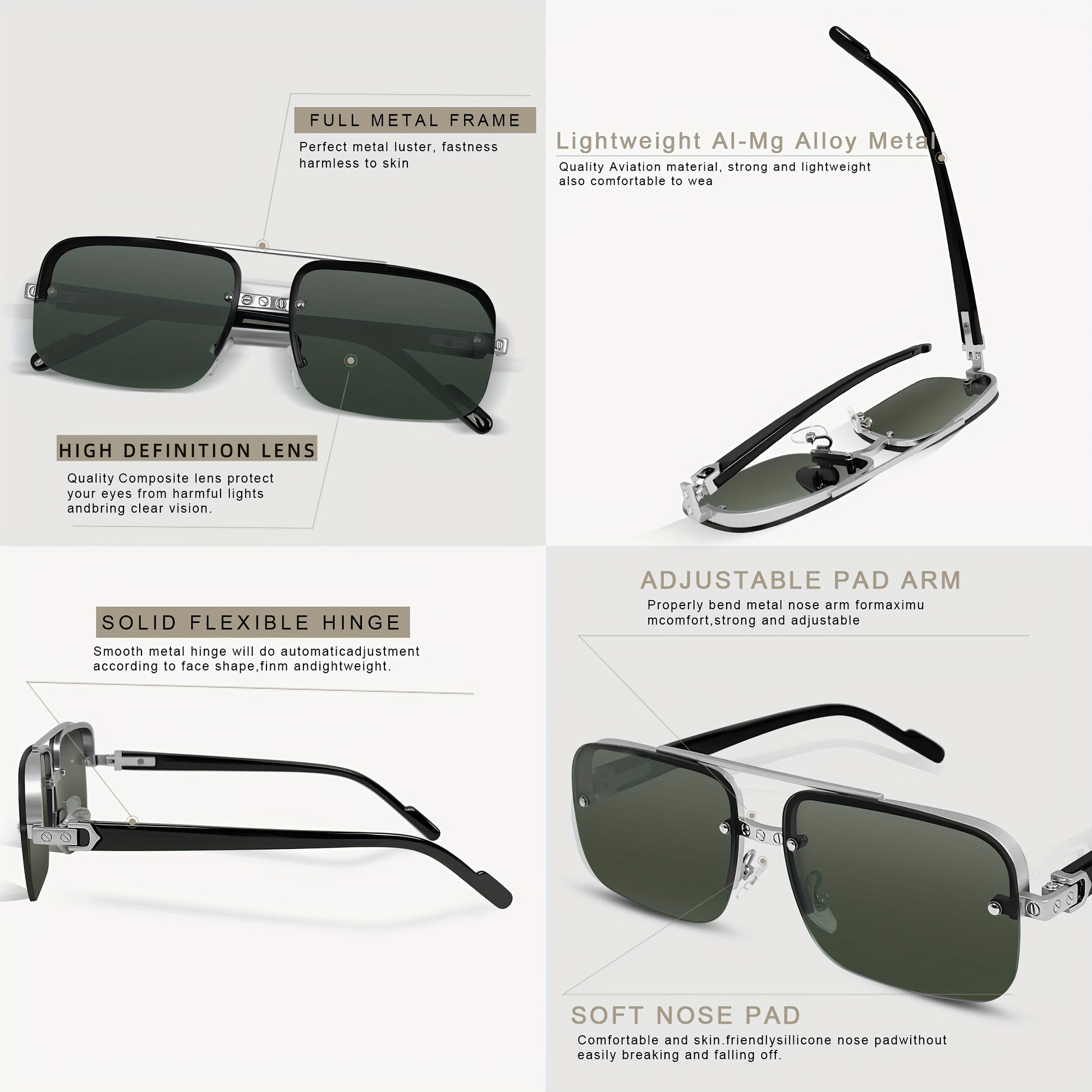 Men's Square Pilot Glasses Metal Frame Driving Travel Fashion