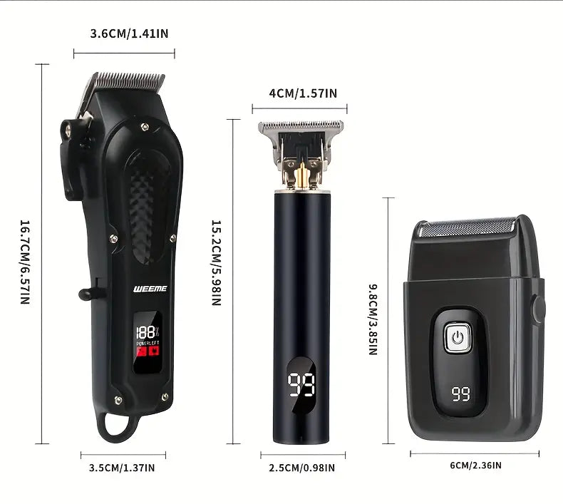 Black Light Digital Display Electric Shaver Set with USB Charging and LCD Screen for Men