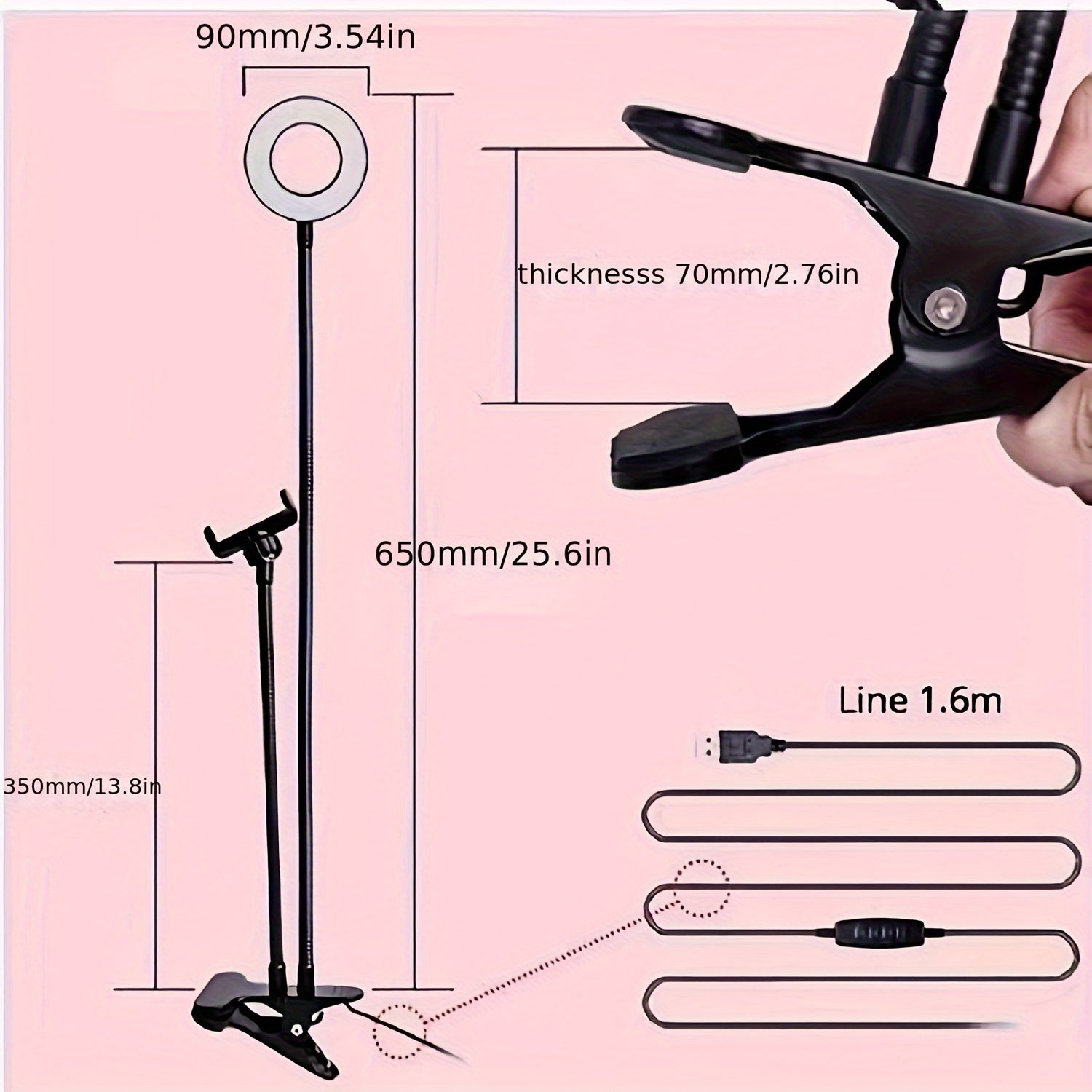 Iron Phone Grip Stand with Ring Light and Clip-On Gooseneck Light for Desk Reading Video Recording