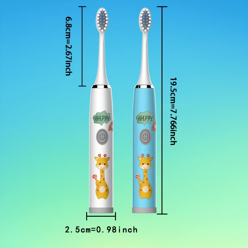Kids Electric Toothbrush Blue White Giraffe Design Battery Powered for Ages 3-15