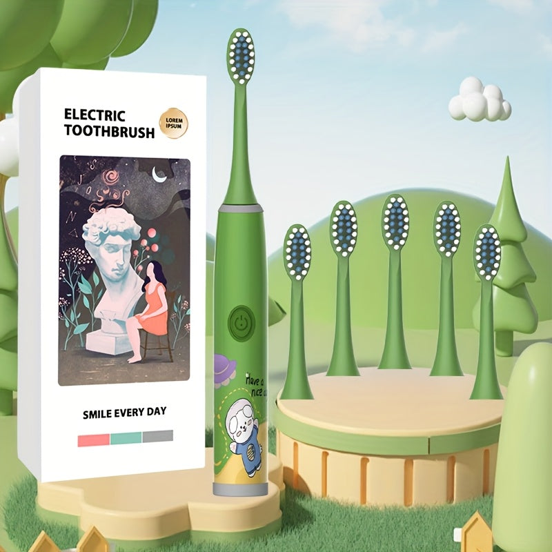 Kids Electric Toothbrush with 2-6 Brush Heads Soft Bristles Space Series