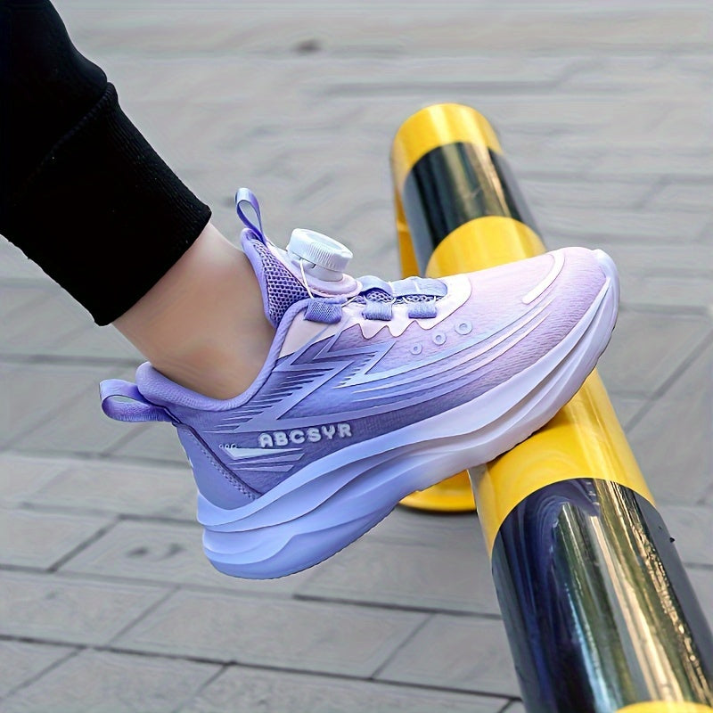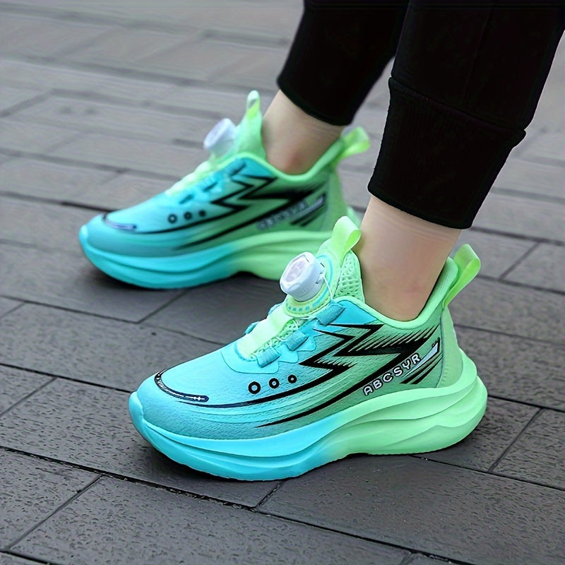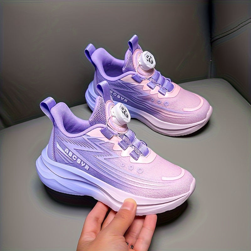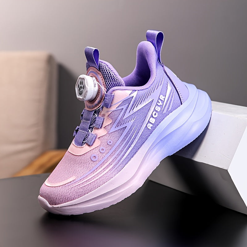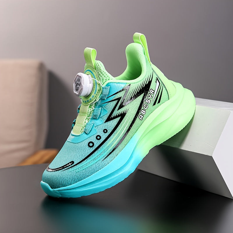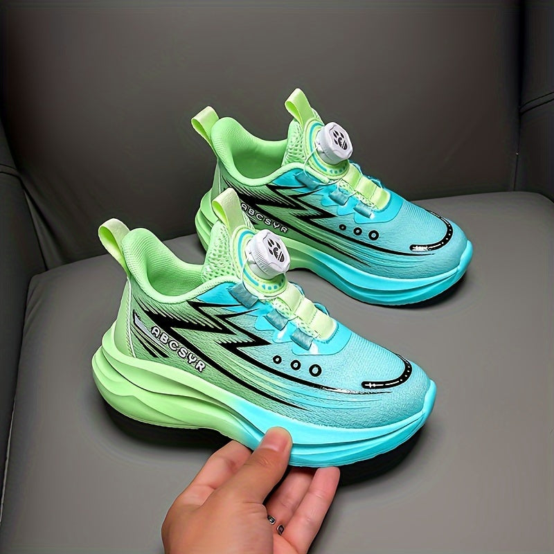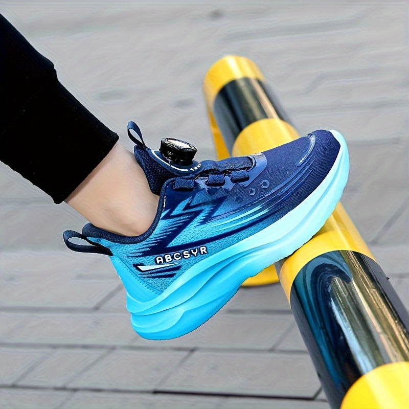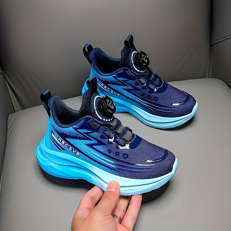 Kids' Navy Blue Mesh Sneakers with Stripes and Rotating Buckle for Boys and Girls