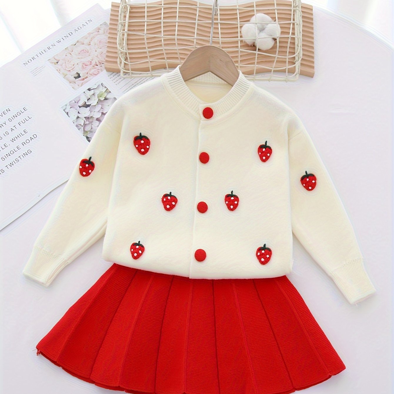 Girls Kids Spring Fall Outfit Set Cardigan Sweater and Pleated Skirt