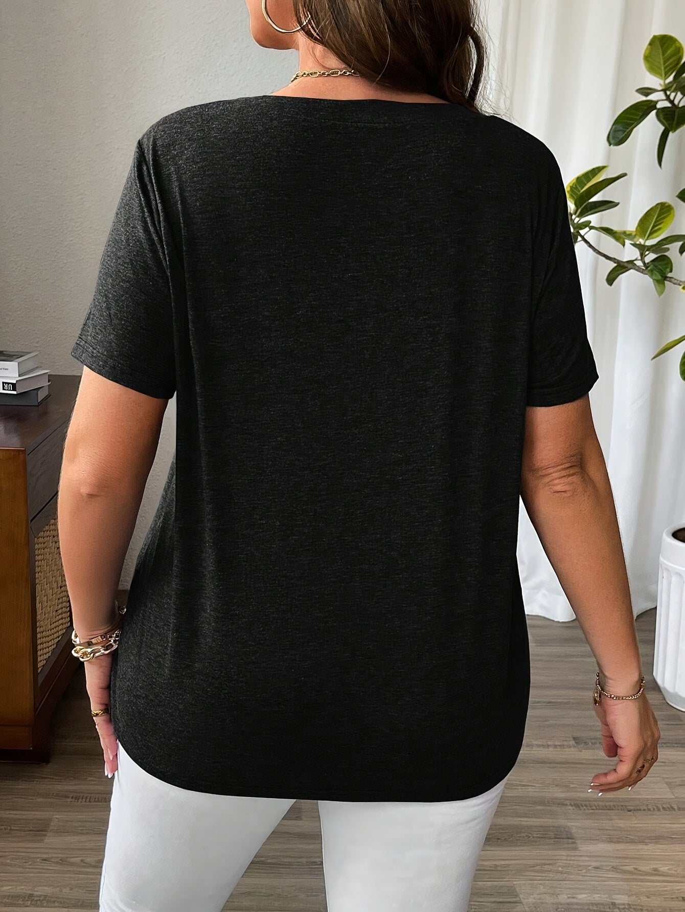 Plus Size Women’s Knitted V-Neck T-Shirt Summer Cross-Criss Cross Top