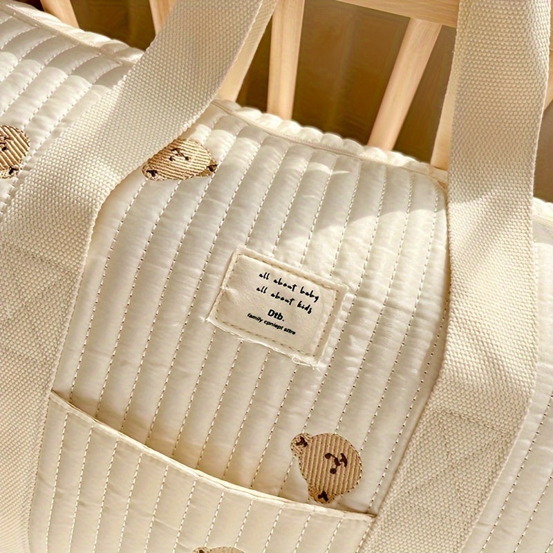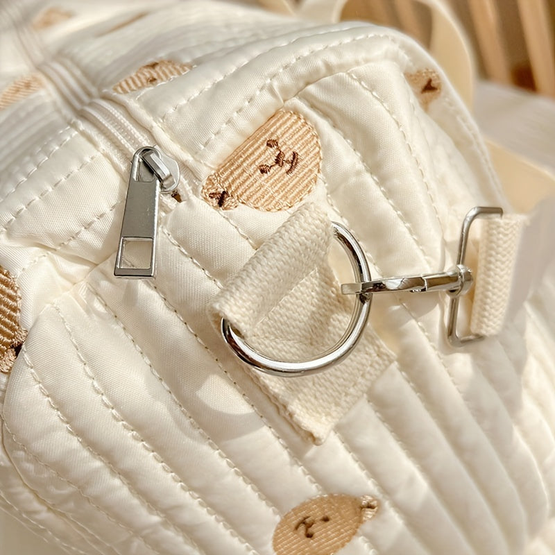 Large Capacity Storage Bag with Embroidered Bear Design for Travel and Organization
