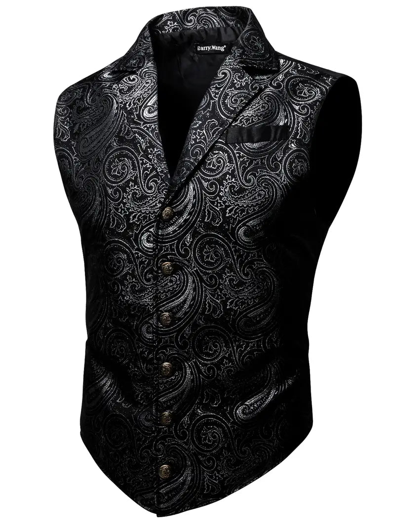 Large Green Satin Jacquard Floral Vest for Victorian Steampunk Gothic Events
