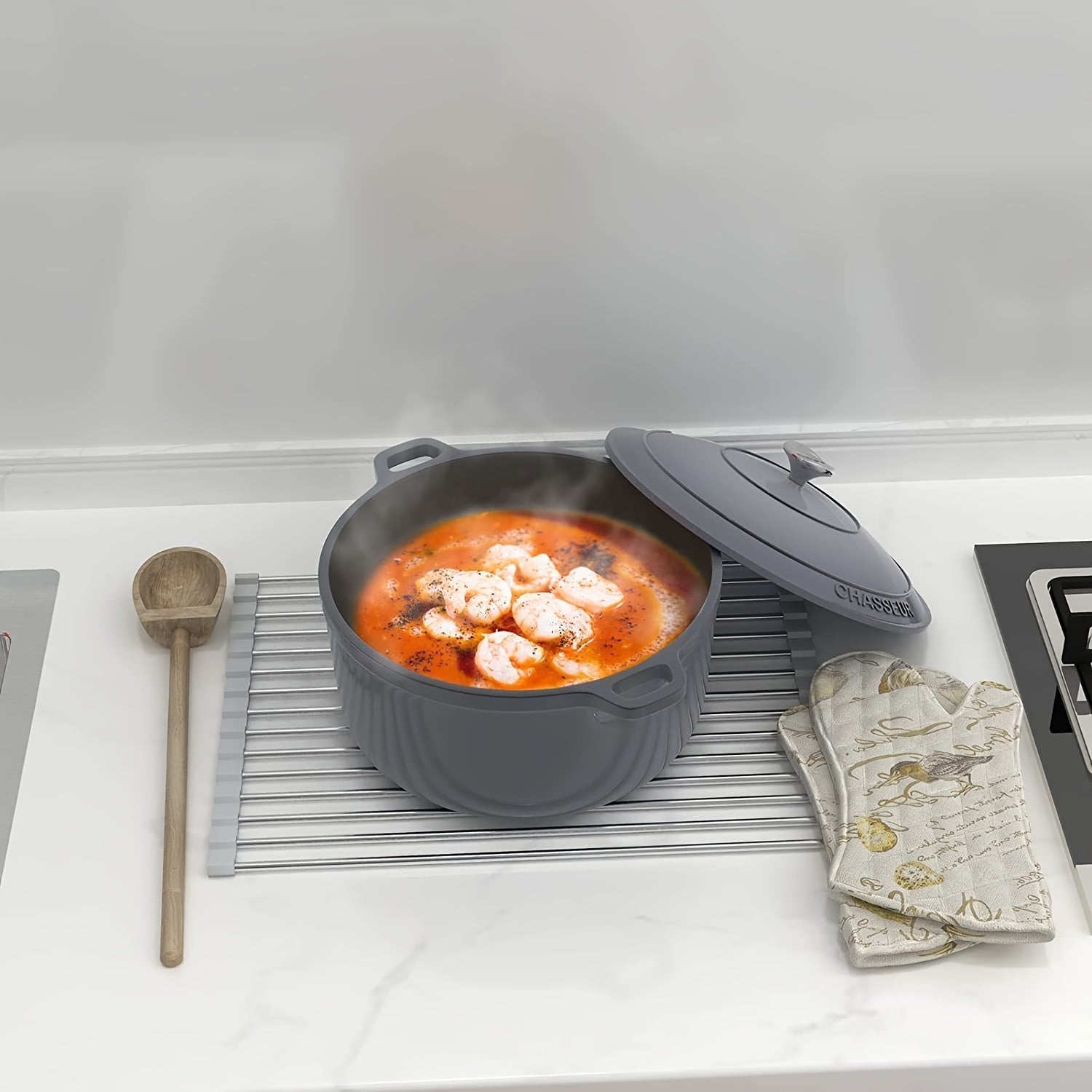 Large Grey Stainless Steel Silicone Heat Resistant Non-Slip Dish Drying Rack with Sink Drain