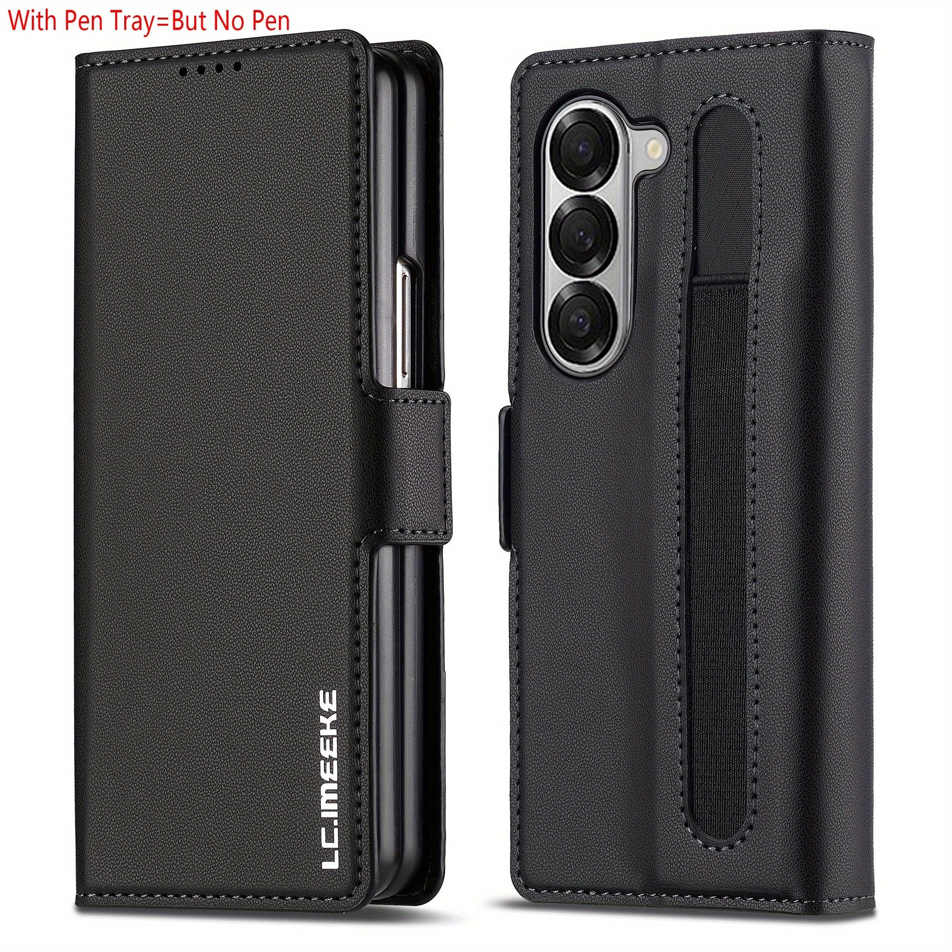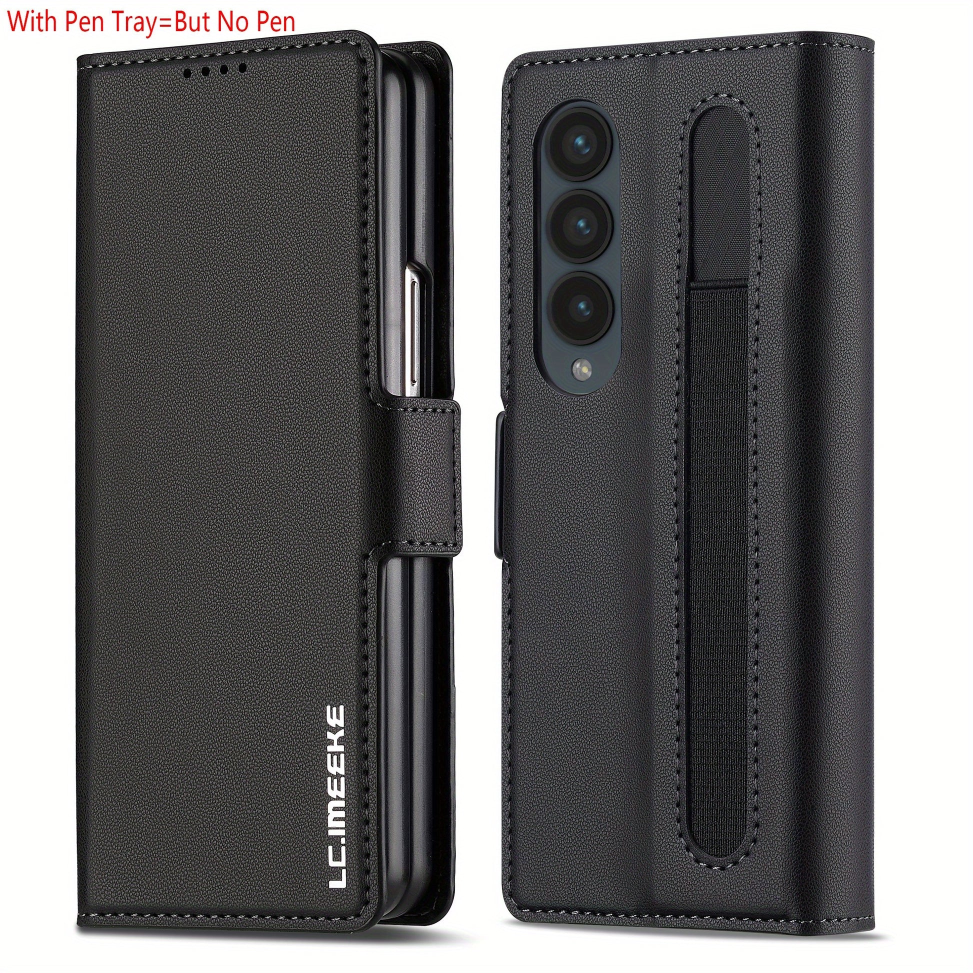 Faux Leather Flip Phone Case for Samsung Galaxy Z Fold 6 5 4 3 with Pen Tray Credit Card Holder for Men Women