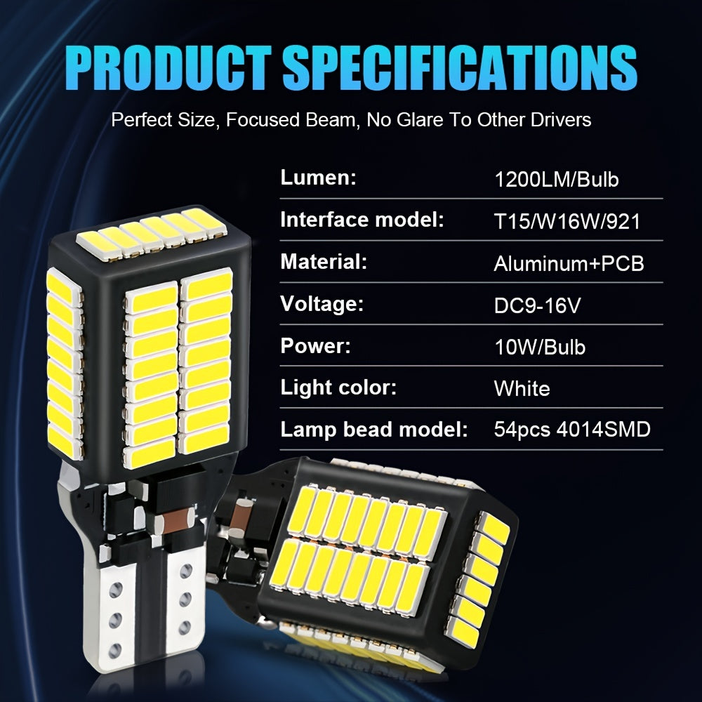 LED Reverse Lights 2 Pack White T15 921 902 904 906 579 4014 Bulbs