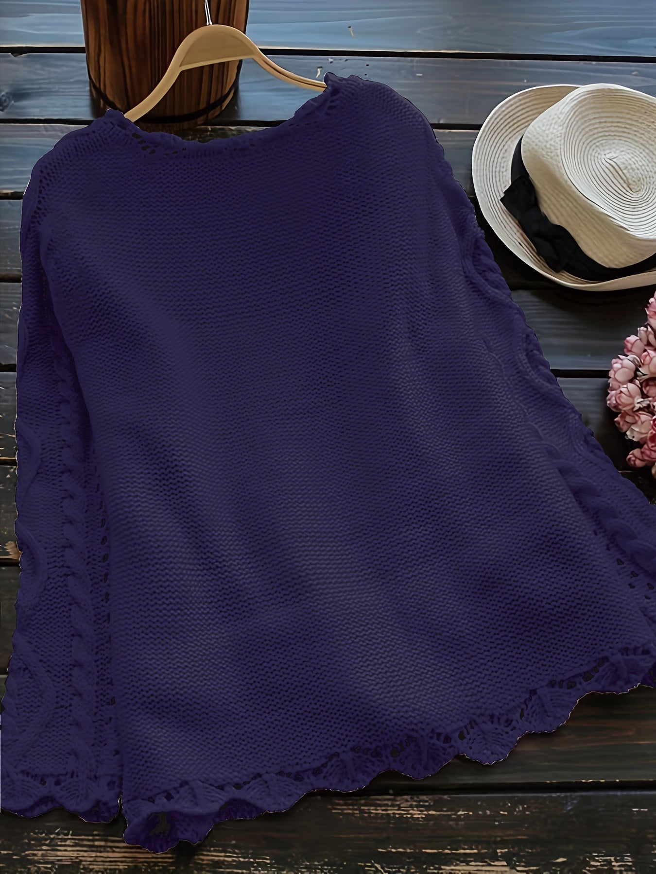 Women's Light Blue Casual Knit Cardigan with Lace Detailing and Round Neck