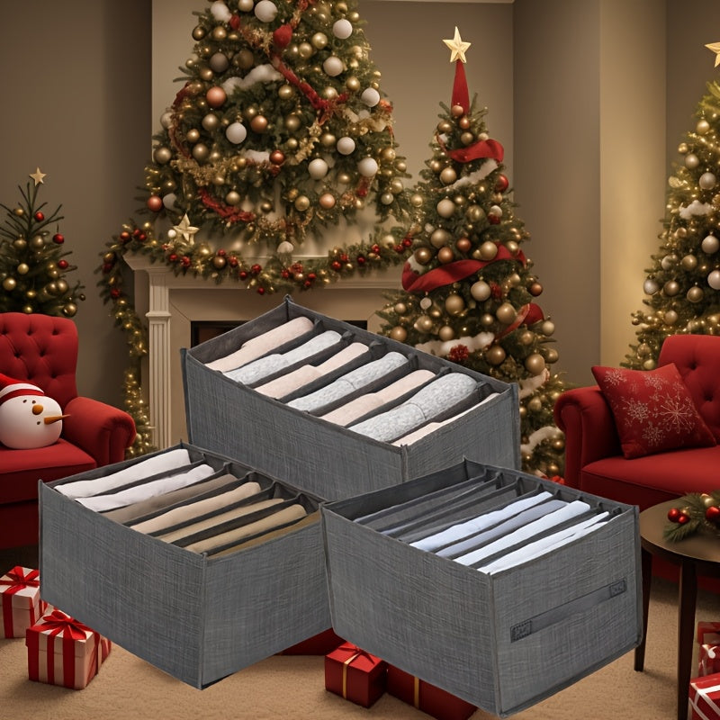 Grey Fabric Closet Organizer with Handle for Wardrobe Storage Divider