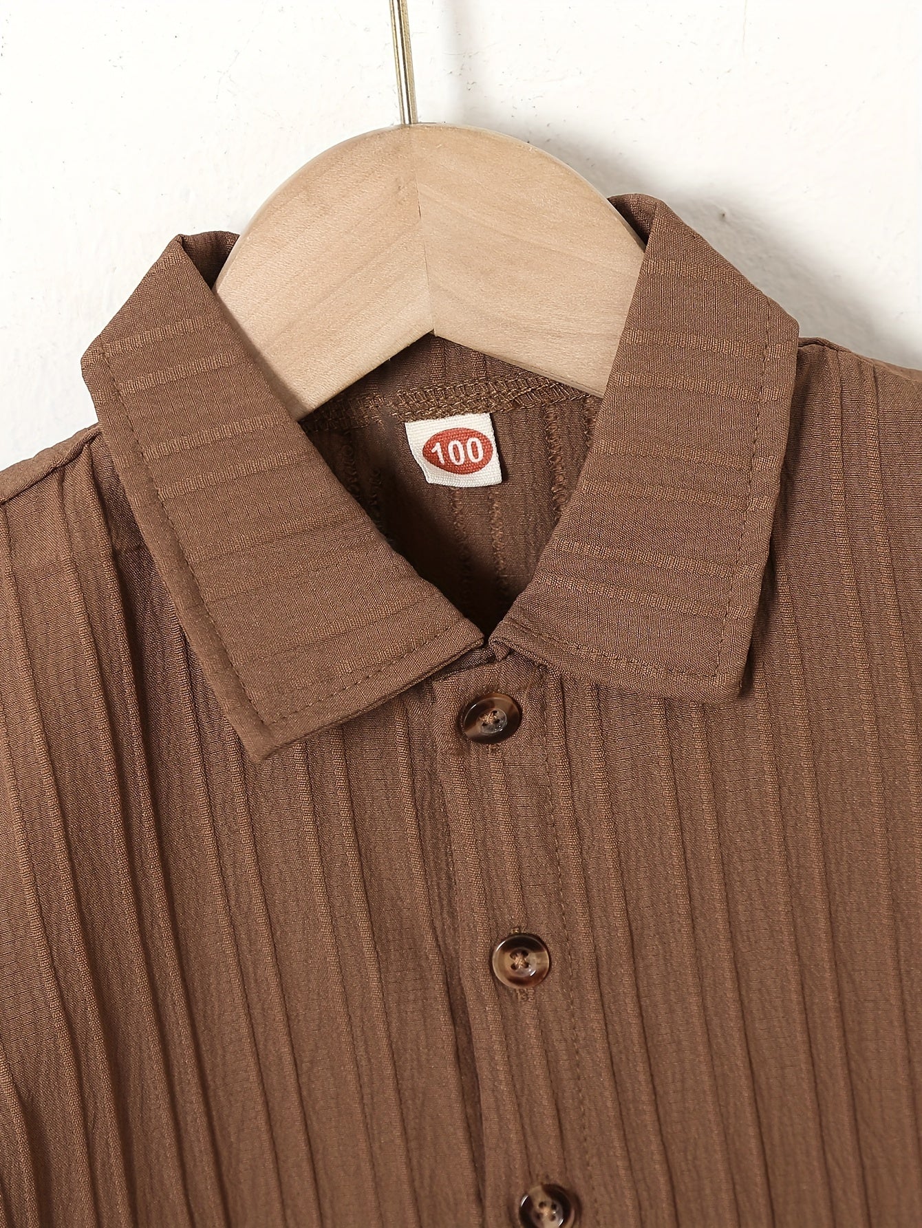 Kids Boy's Short Sleeve Solid Color Button Front Shirt and Shorts Set