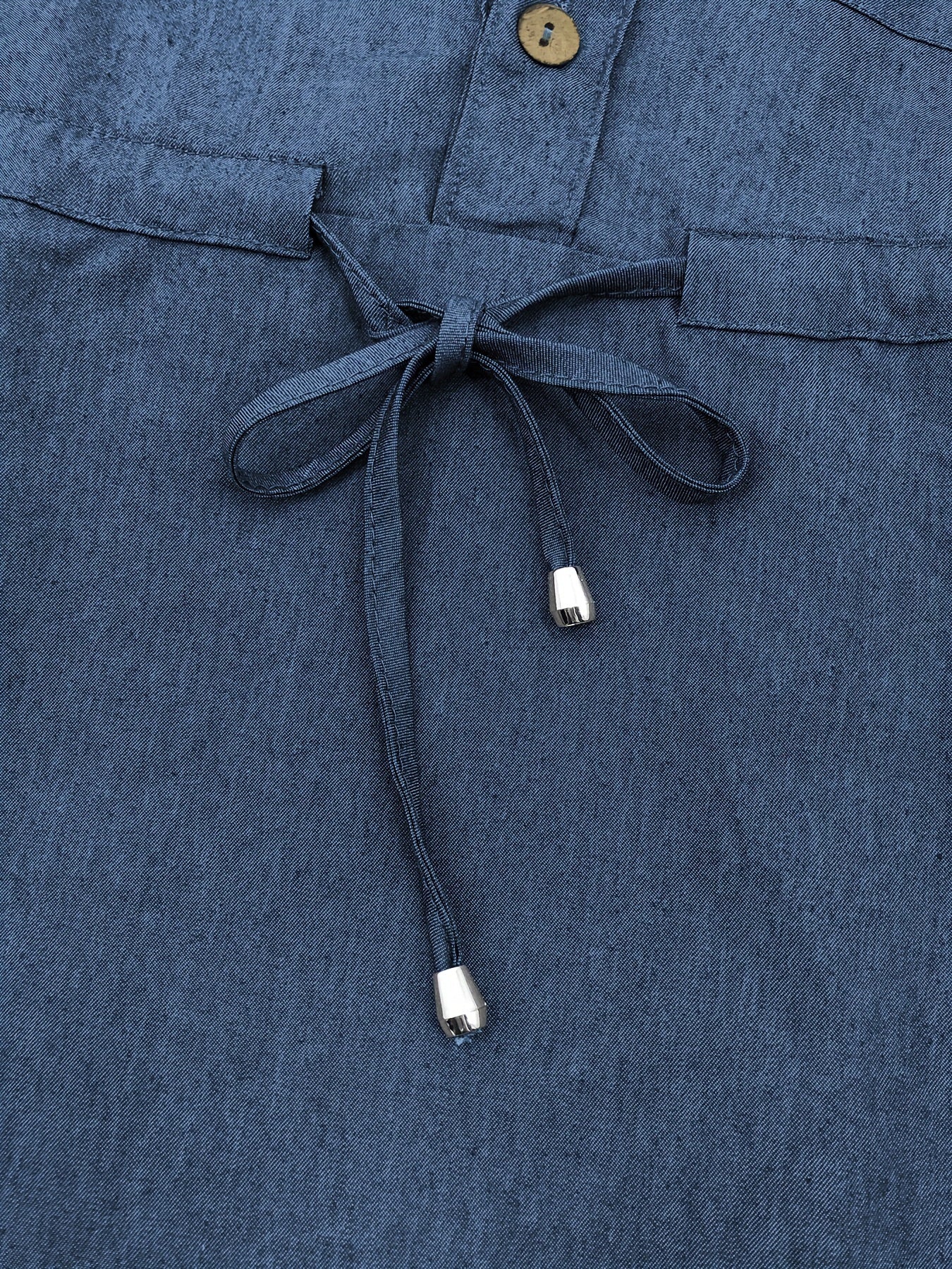 Women’s Long Sleeve Solid Abaya Dress with Drawstring Waist for Ramadan