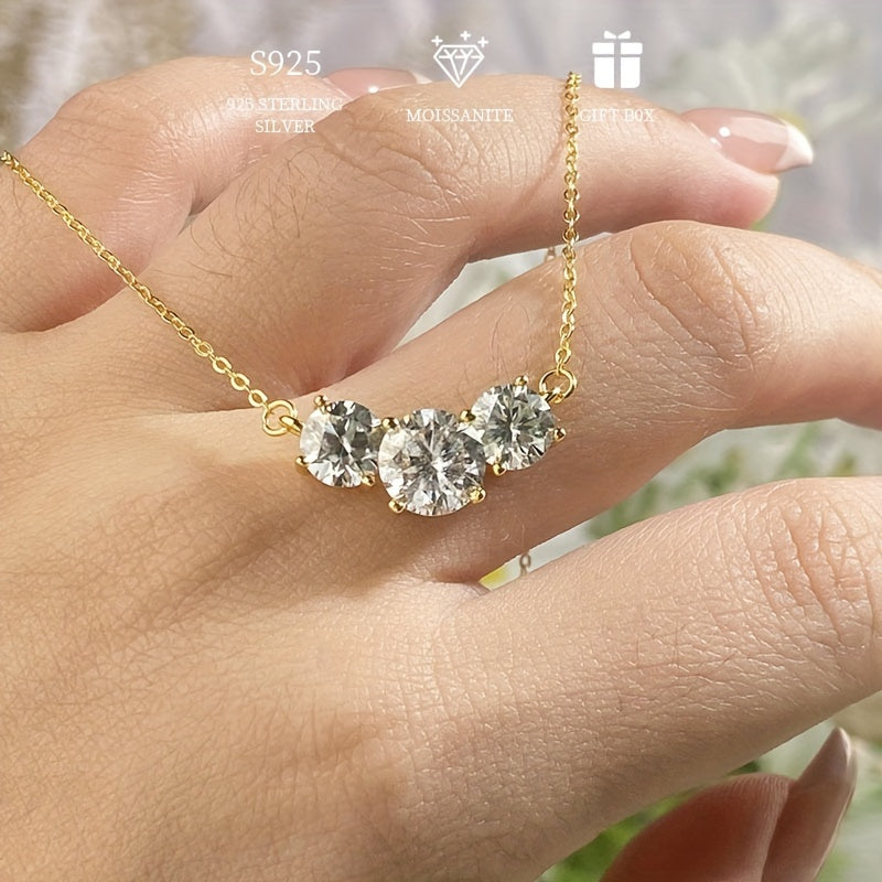 Sterling Silver Three Stone Necklace with Moissanite 2-4ct for Women