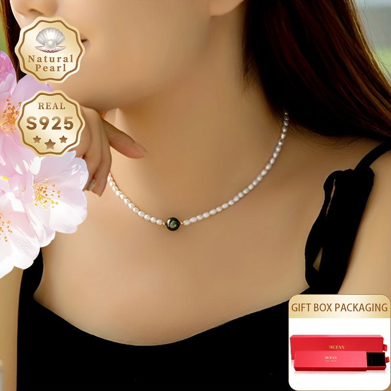 Pearl Necklace for Women Freshwater and Tahitian Pearls Sterling Silver Adjustable Gift