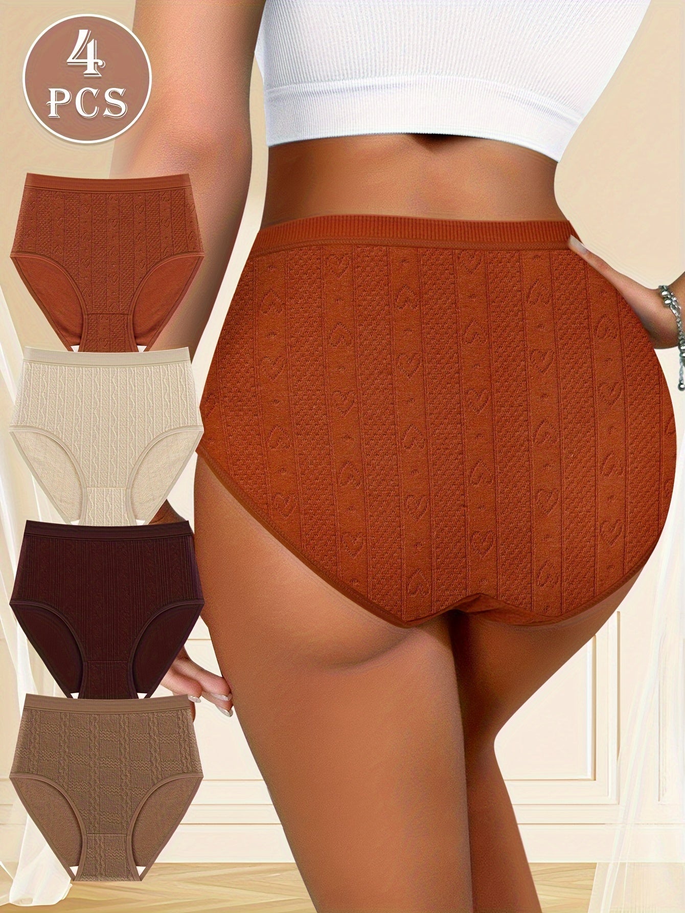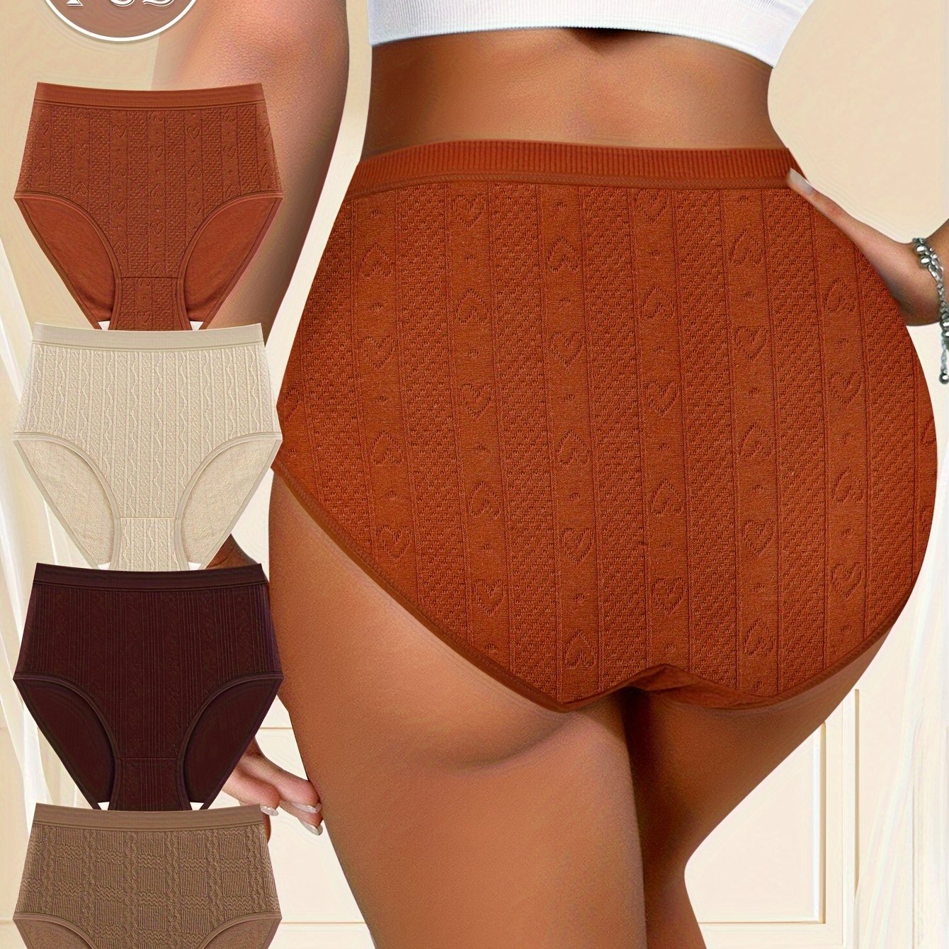 Plus Size Floral Print Low-Waist Panties 4-Pack Stretchy Polyester Blend